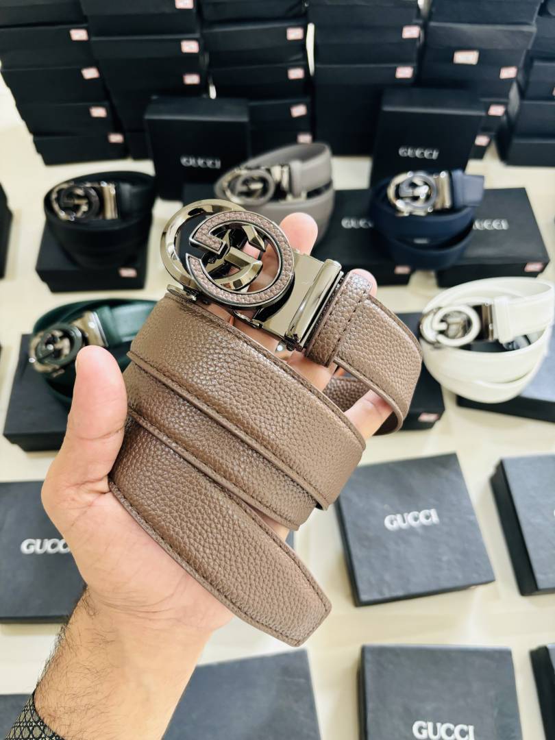 GUCC I MATTE GOLDEN PRINTED PREMIUM QUALITY BELT WITH BOX FULL KIT