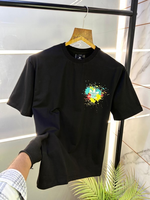 Adida s Back Printed Black Off Shoulder Premium Round Neck T-shirt F2385-BL