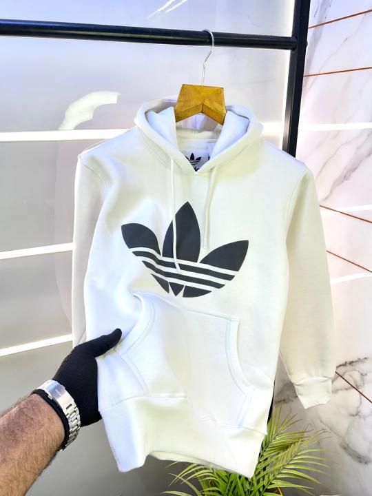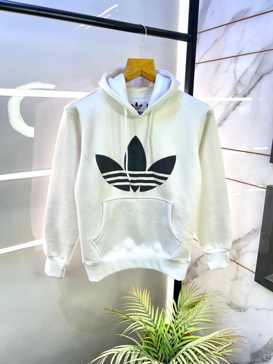 Adida s Imported White Printed Super Premium Hoodie F2975-W3
