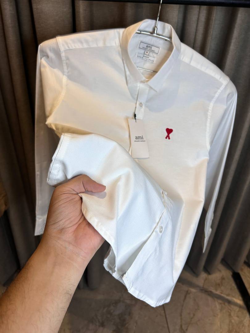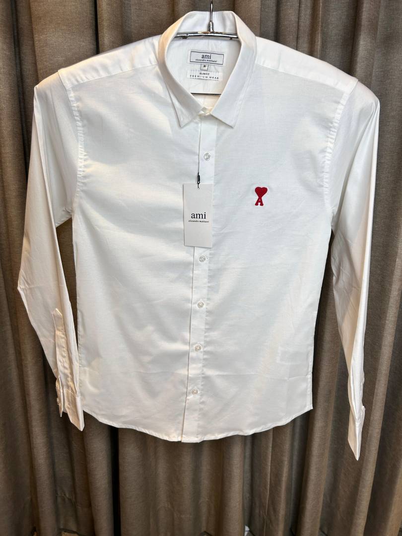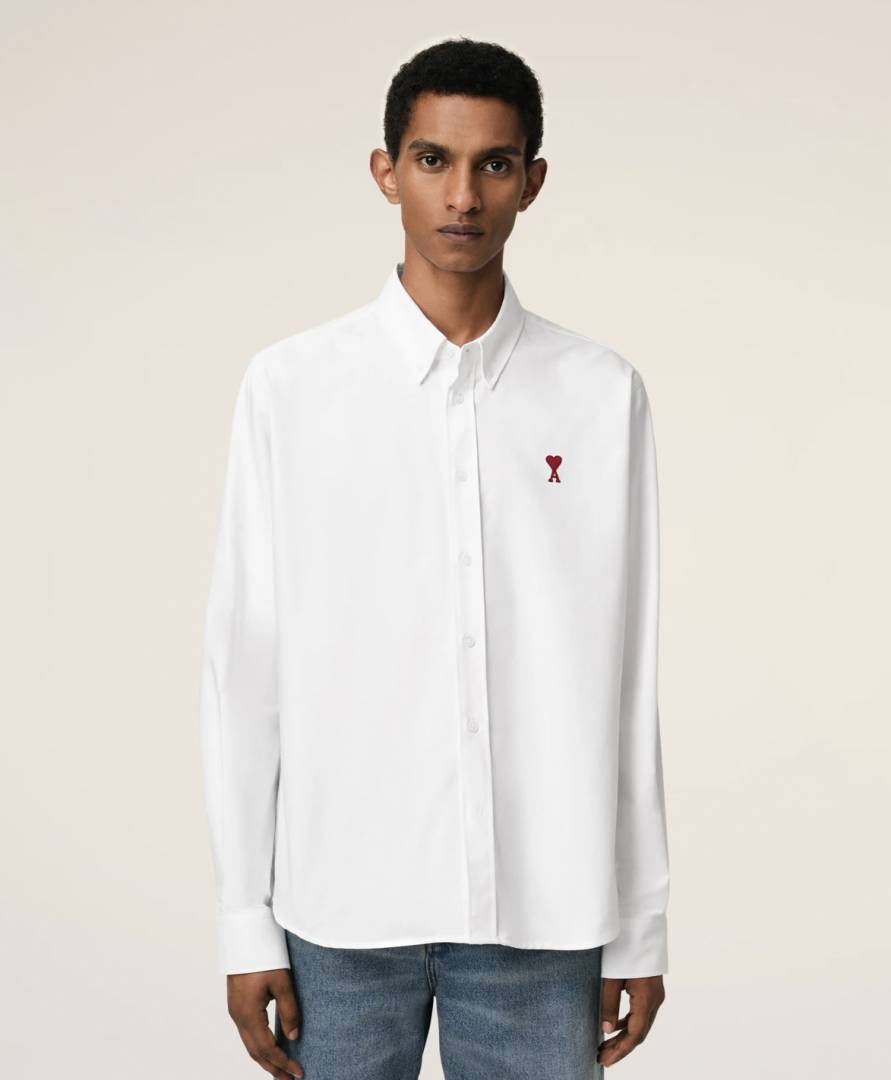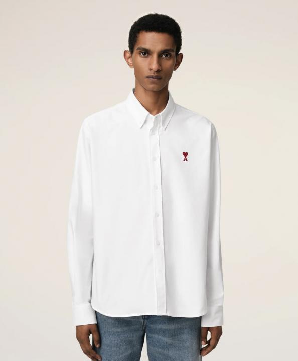 AMI PARIS WHITE PREMIUM IMPORTED RED LOGO SHIRT