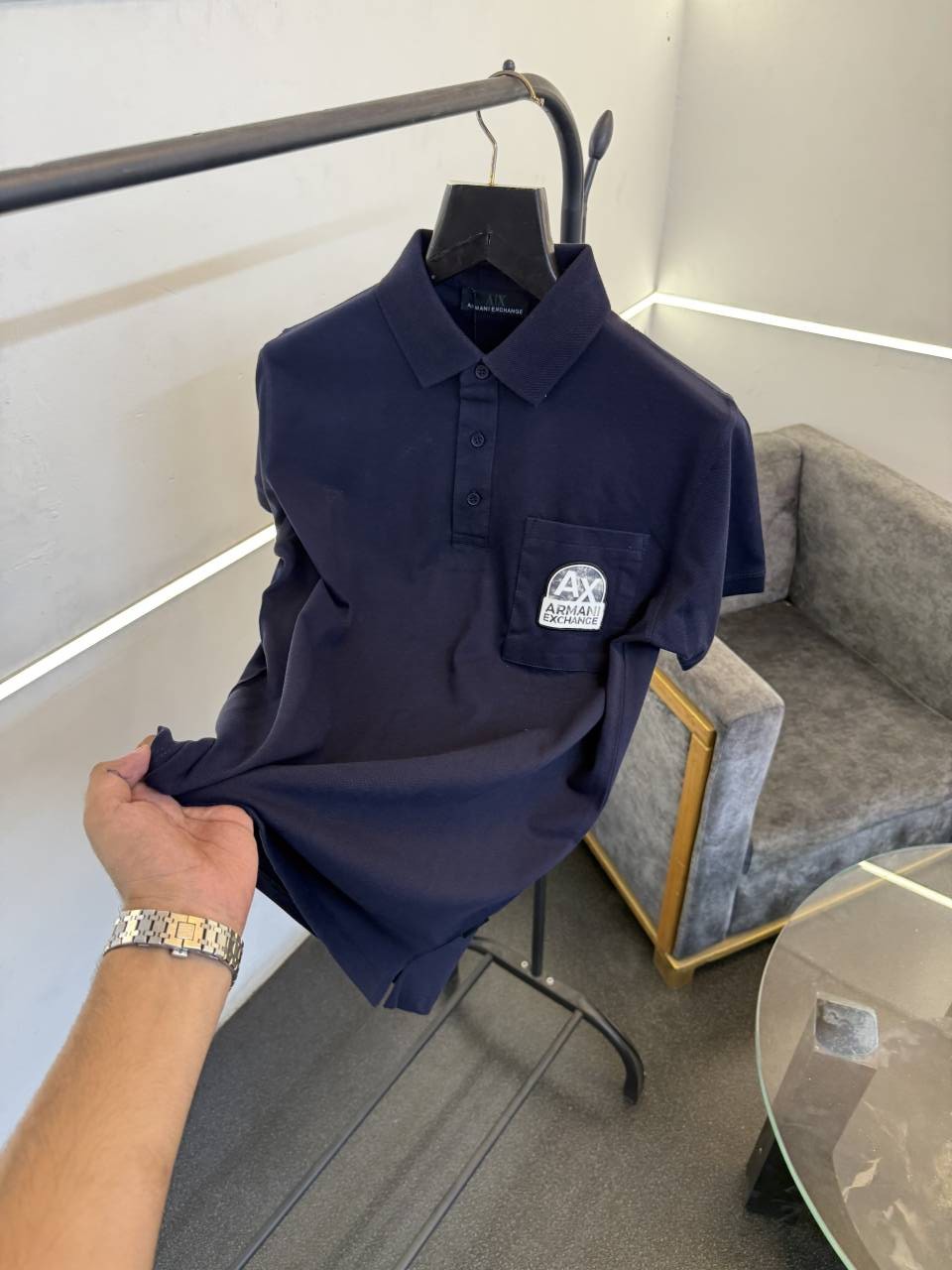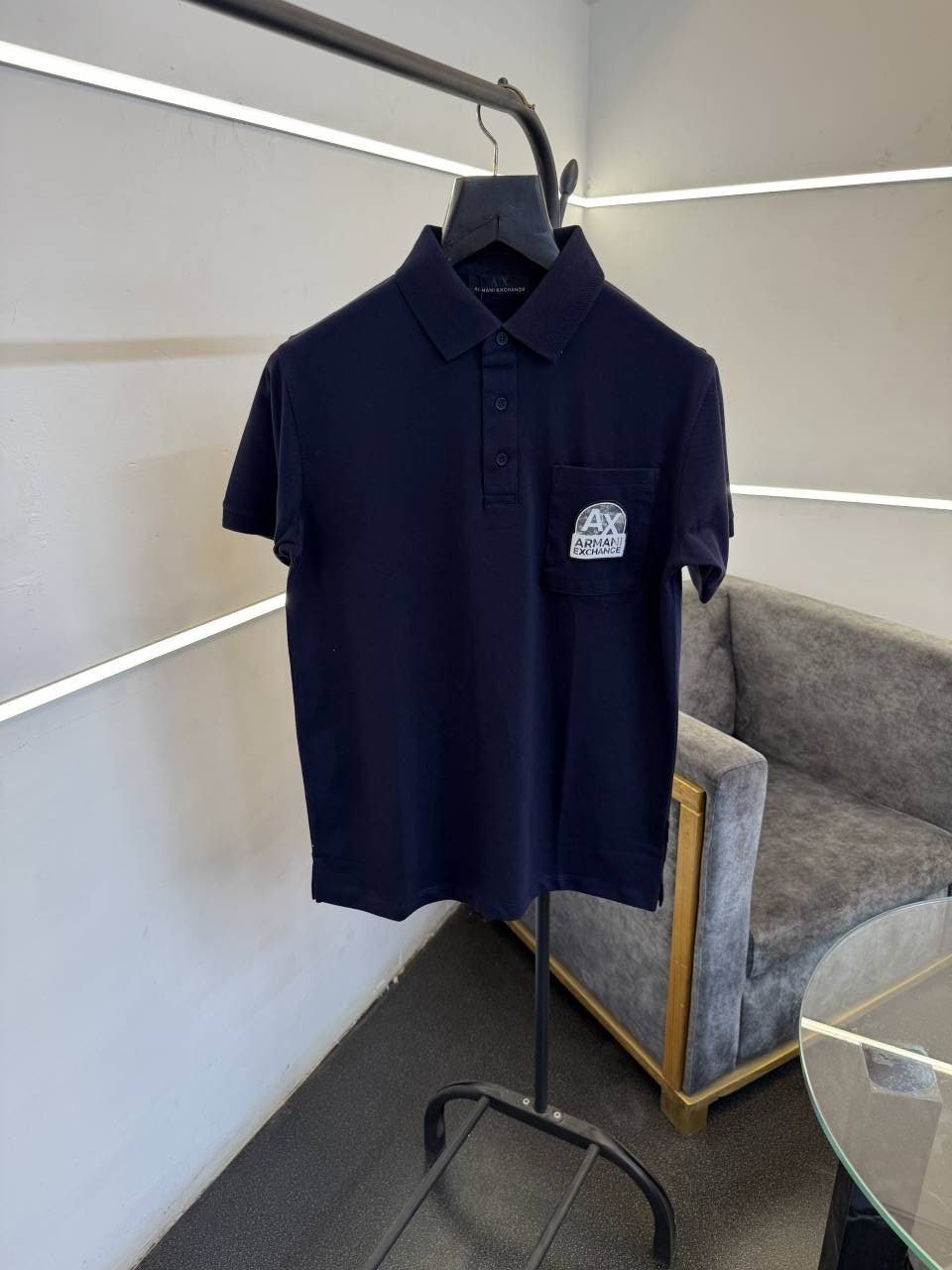 Arman i exchange front pocket with patch logo imported knitted collar polo tshirt navy sale