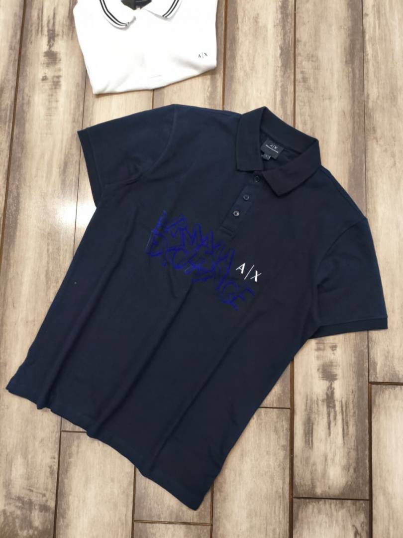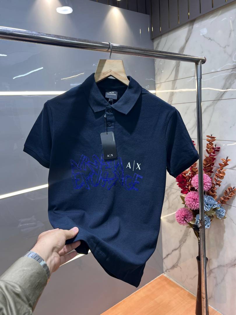 Arman i Exchange Navy Premium Cotton Lycra Pique fabric Polo Tshirt with Front Design and Emboss Logo 3157