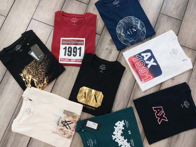 Arman i Exchange Navy Premium Imported 240 GSM Interlock Fabric Round Neck Printed Logo Tshirt 3325