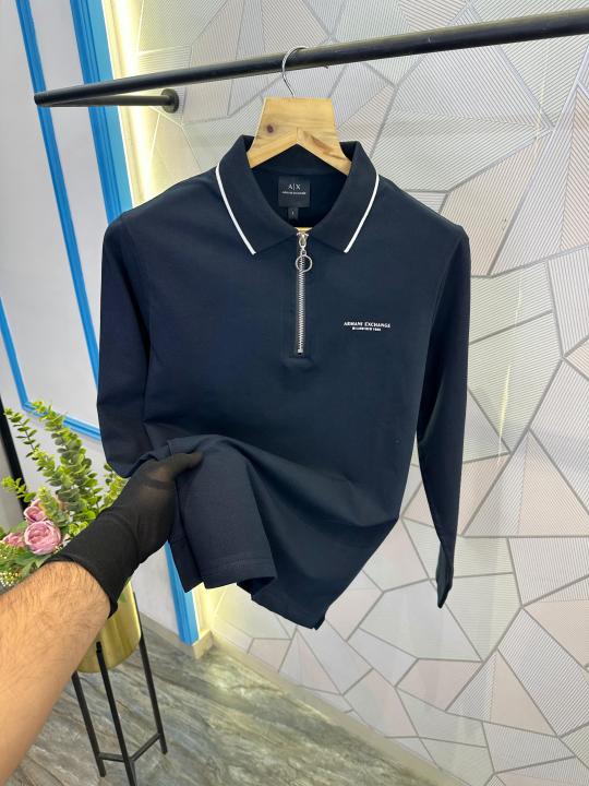 Arman i exchange front pocket with patch logo imported knitted collar polo tshirt navy sale
