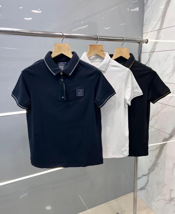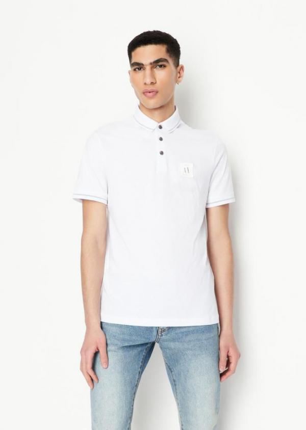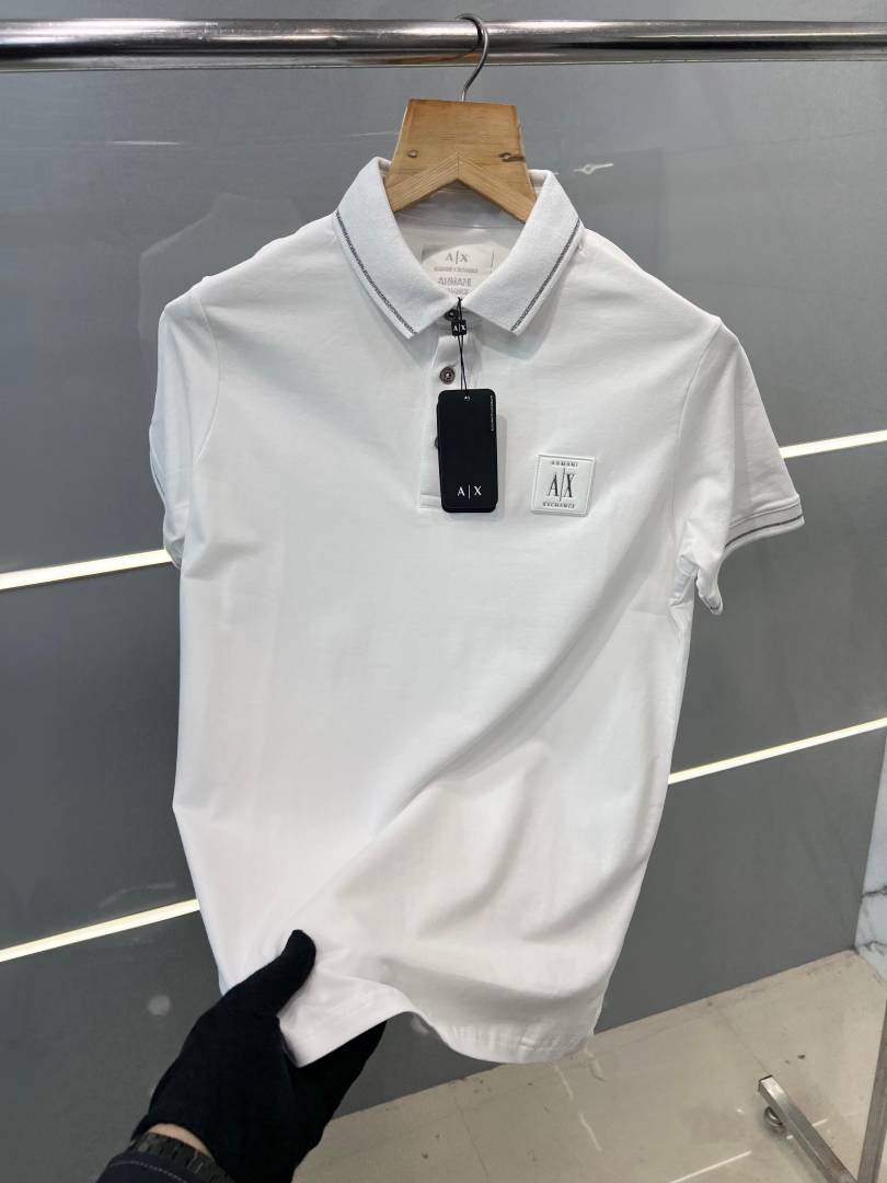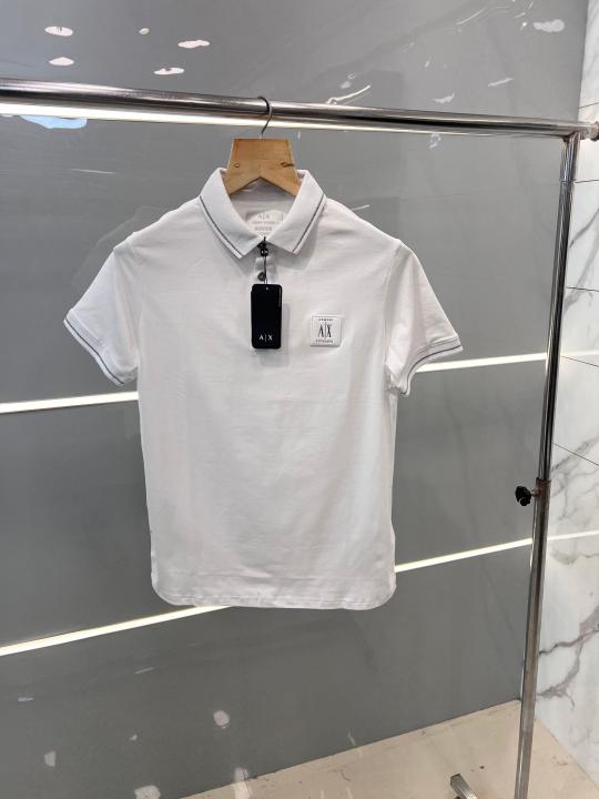 Arman i Exchange White Premium Imported 240 GSM Interlock Cotton Lycra Fabric Polo T Shirt with Patch Logo 715