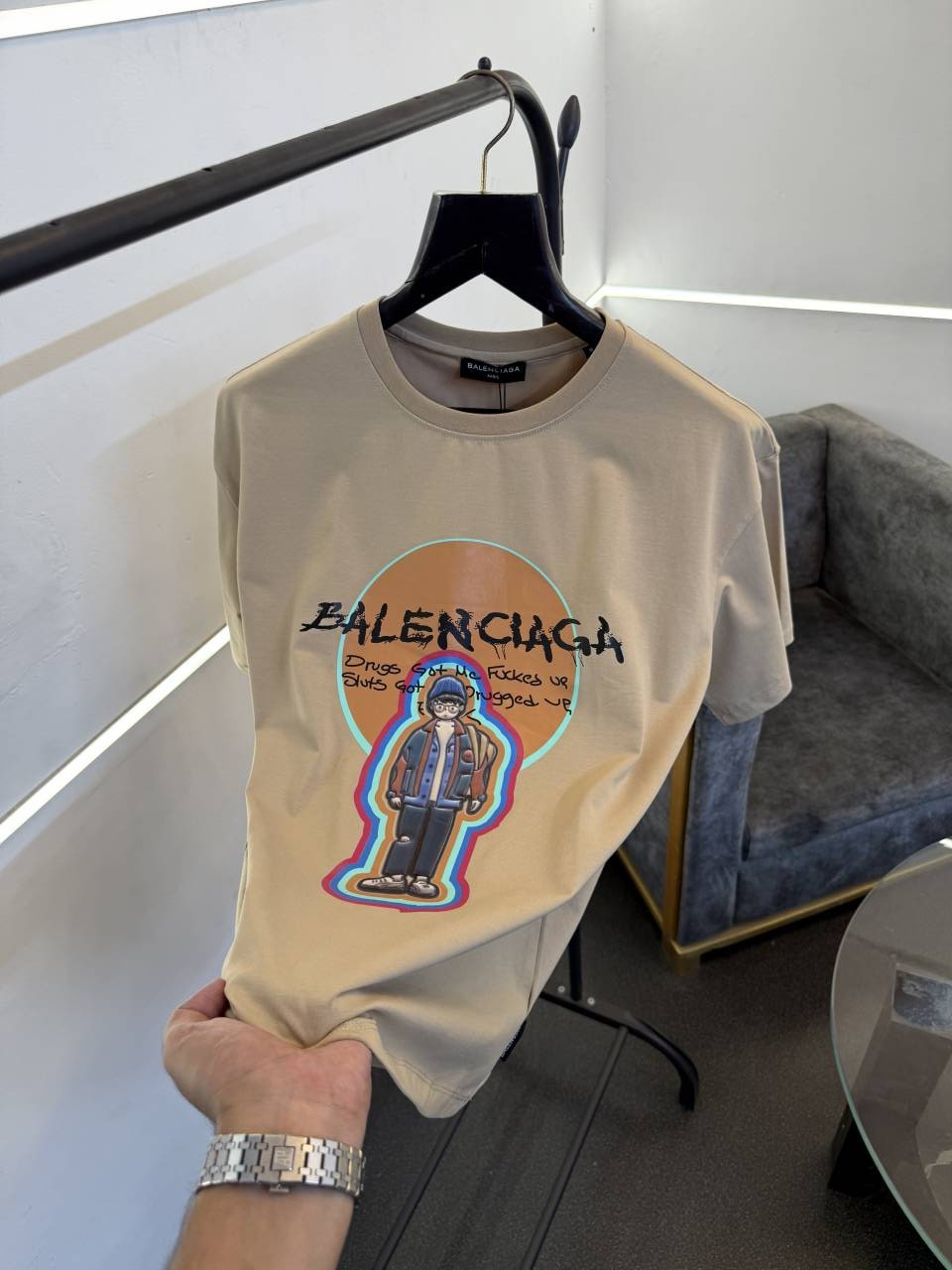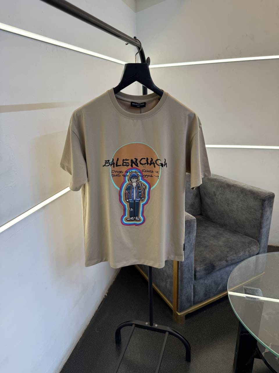 Balenciag a patch man logo with premium printing oversize drop shoulder tshirt beige sale
