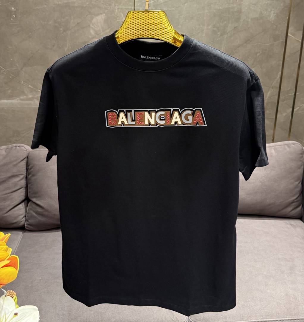 BALENCIAGA BLACK FRONT EMBORSSED PREMIUM TSHIRT