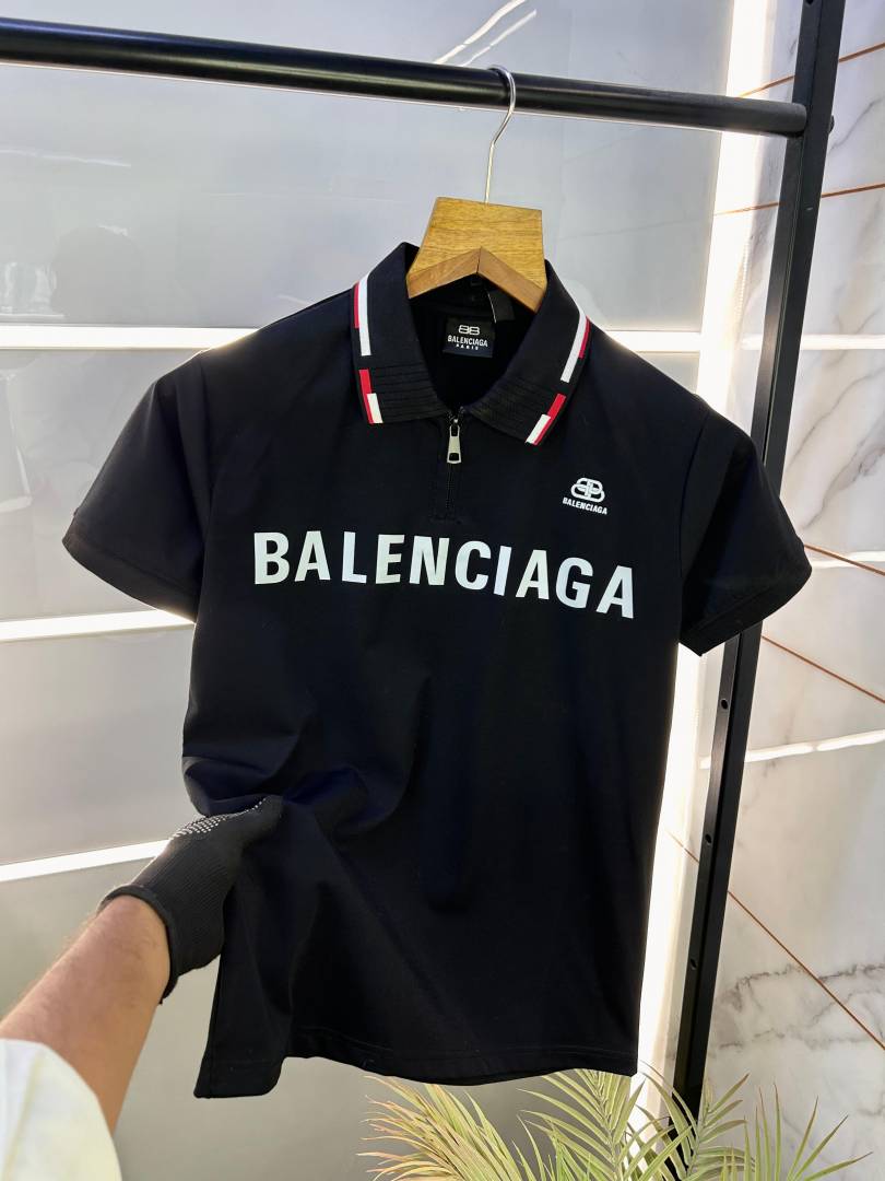 Balenciaga Imported Zipper Black Polo Premium Collar Neck T-shirt F2365-B2