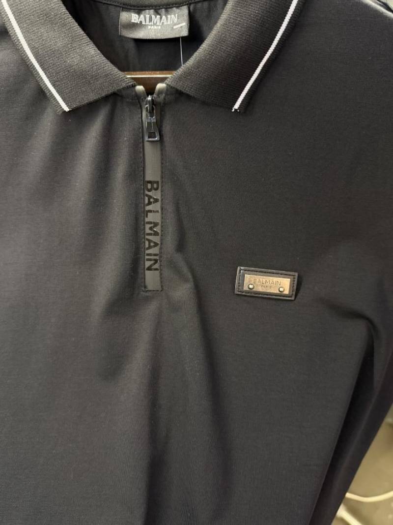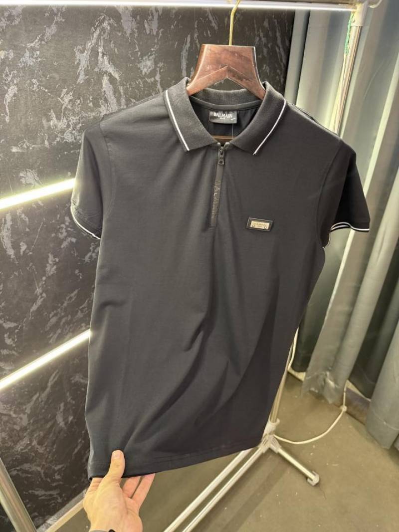 Balmai n designer polo with rubber metal logo With 240Gsm Interlock Cotton Lycra Fabric Polo (1542)