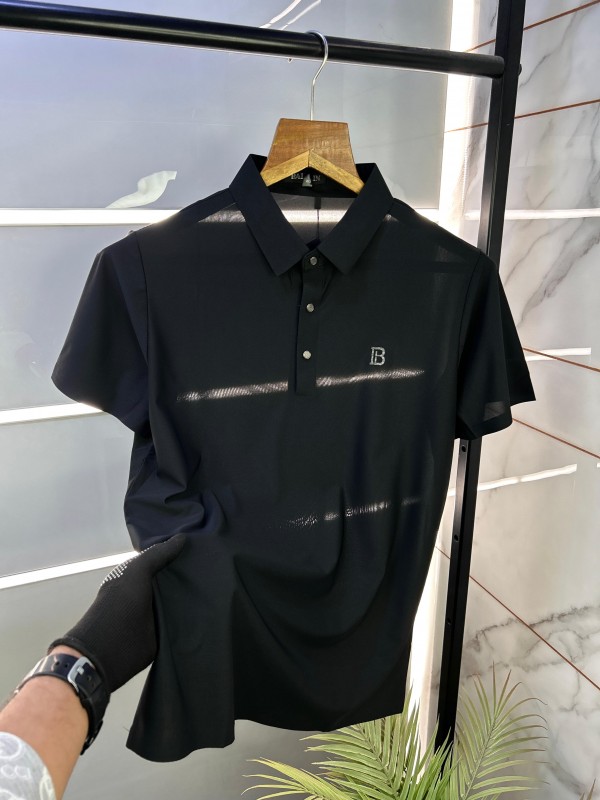 Balmai n Paris Imported Polo Super Premium Black Collar Neck T-shirt F2450-BL
