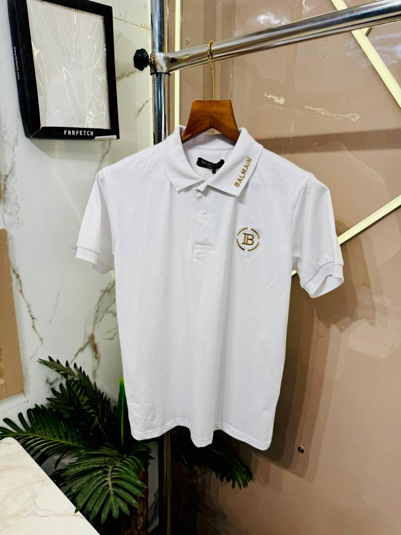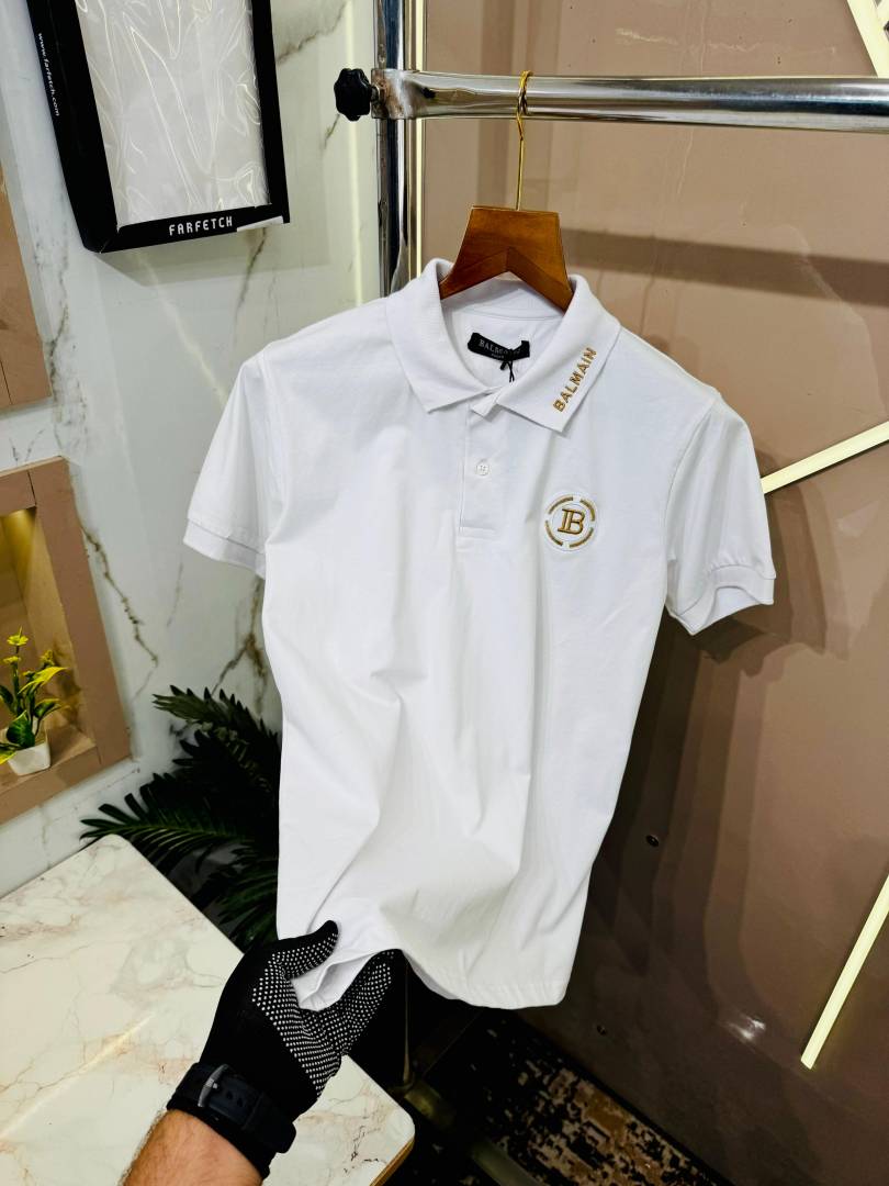 .BALMAIN.IMPORTED.MATTY.COTTON.LYCRA.FABRIC.FRONT.EMBROIDERY.VERY.PREMIUM.POLO.NECK.TSHIRT.
