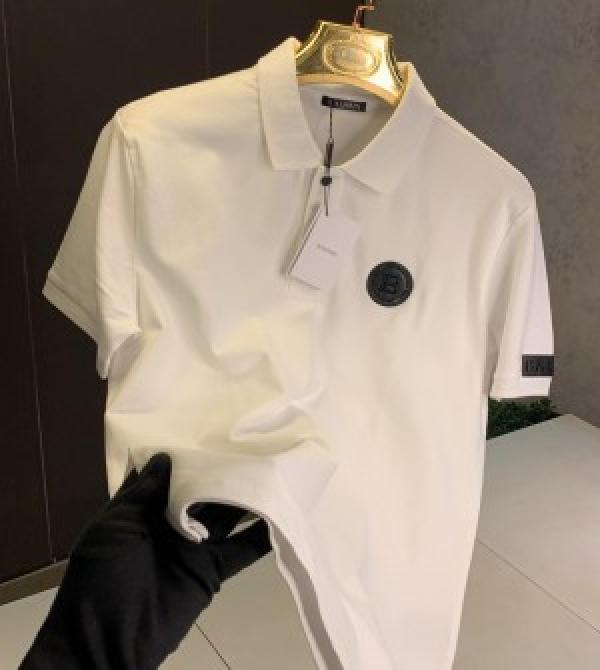 Balmain_Paris_White_Patch_Logo_Designer_Imported_Polo_T-Shirt_(831)