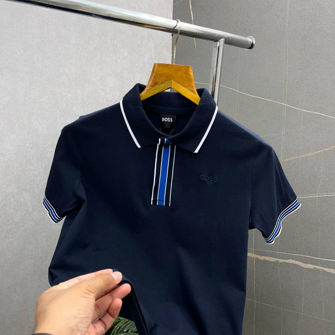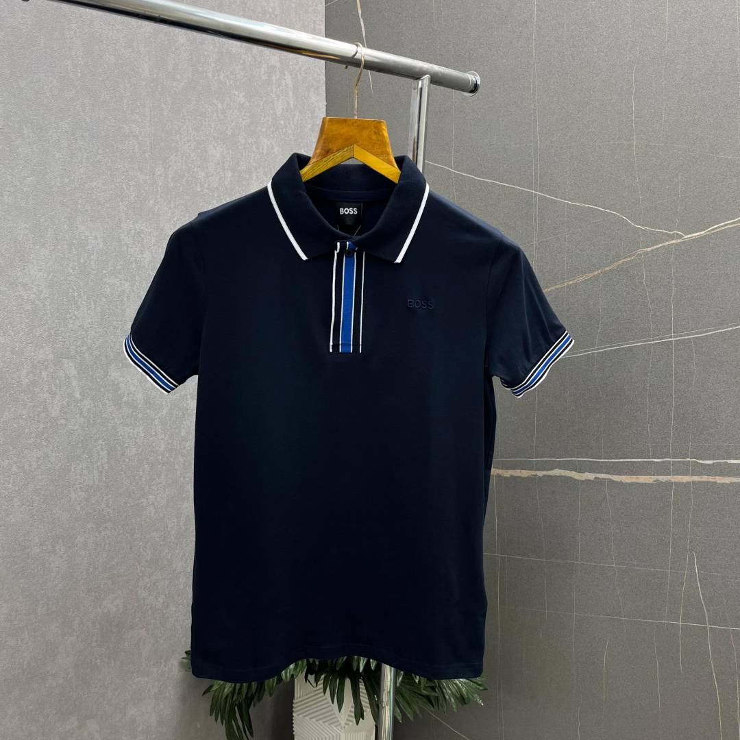 SALE Bos_s Navy Blue Premium Polo Neck Tshirt 447