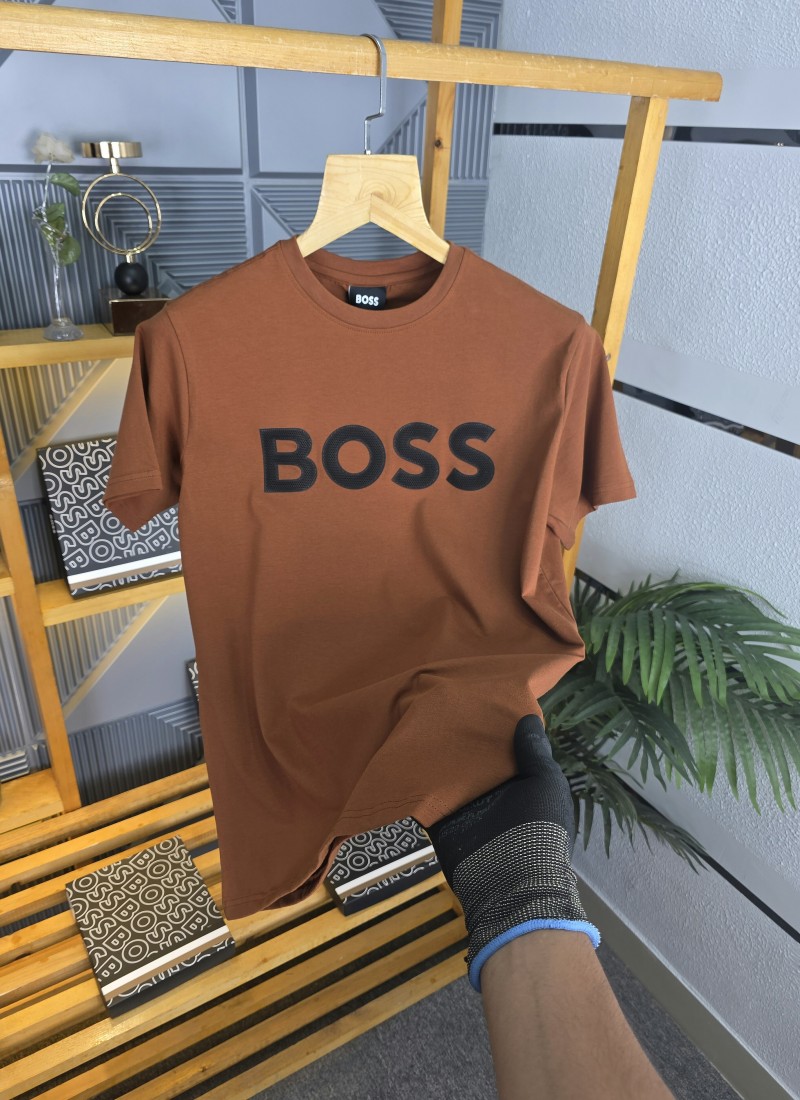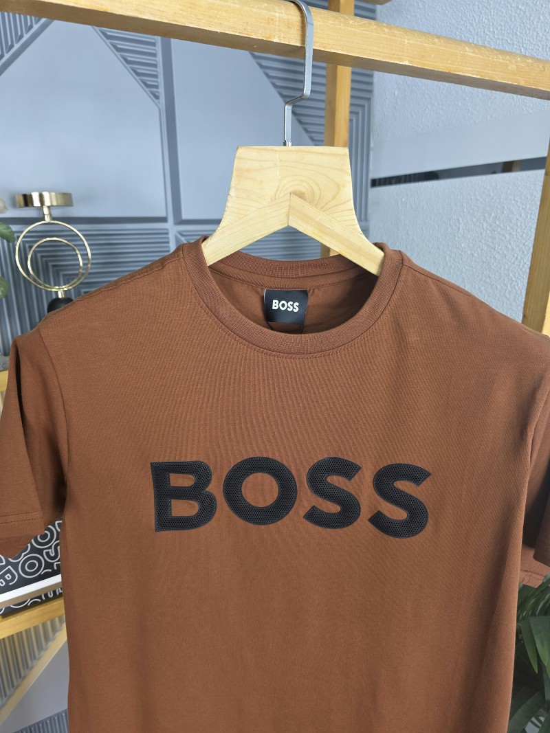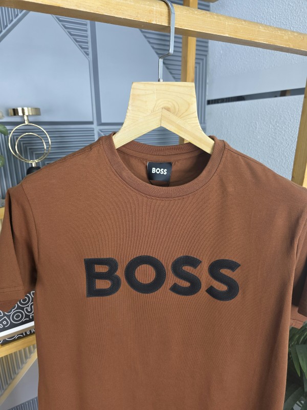 Hacket Middle Brand Logo Round Neck T-shirt Brown