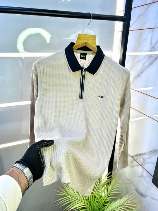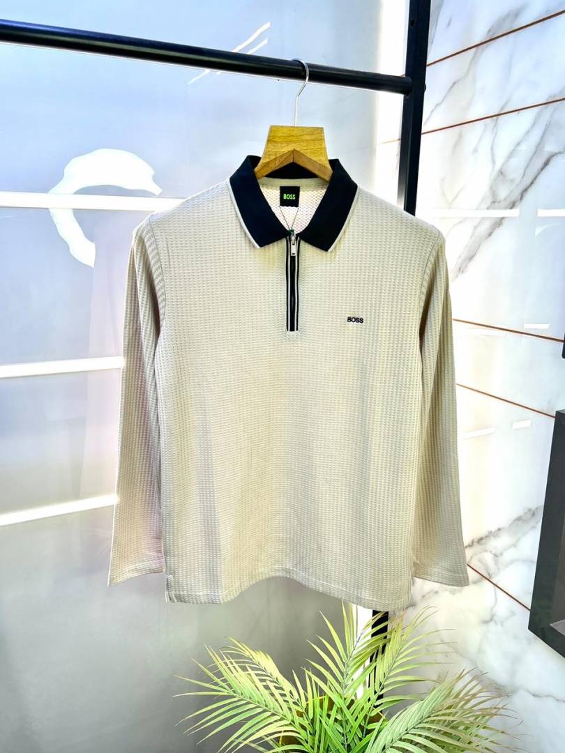 Boss_ Cream Premium Polo Neck Tshirt 371 SALE
