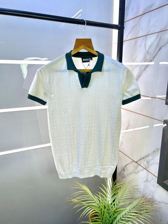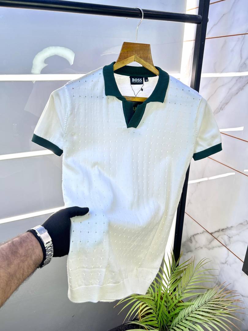 Boss Knitted Polo White Super Premium Collar Neck T-shirt F2754-WH