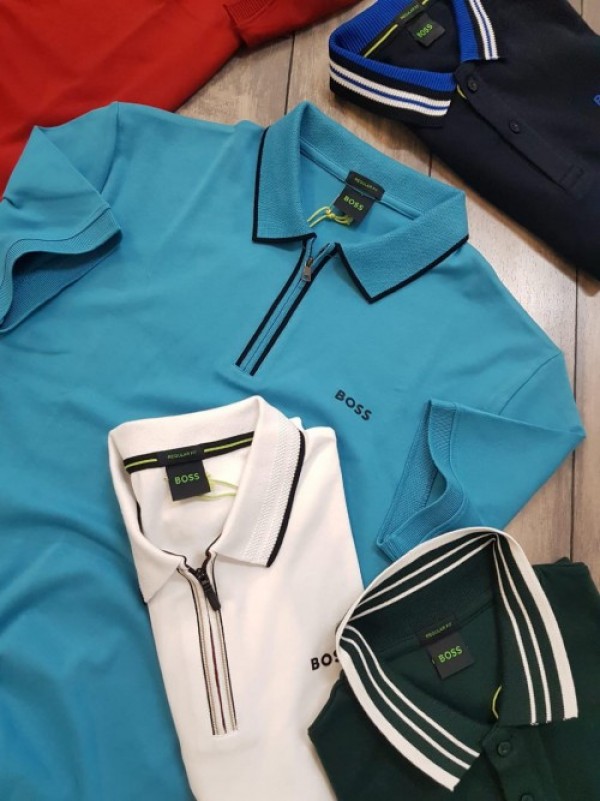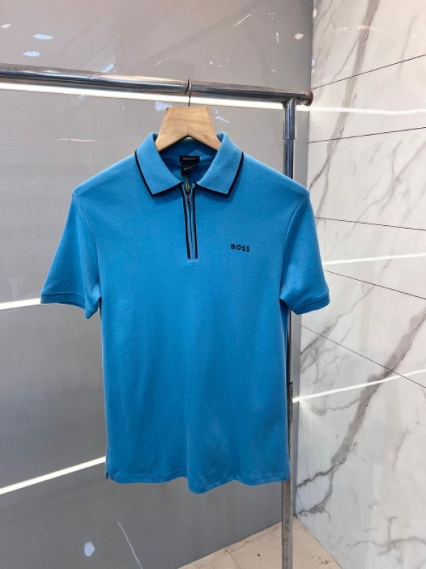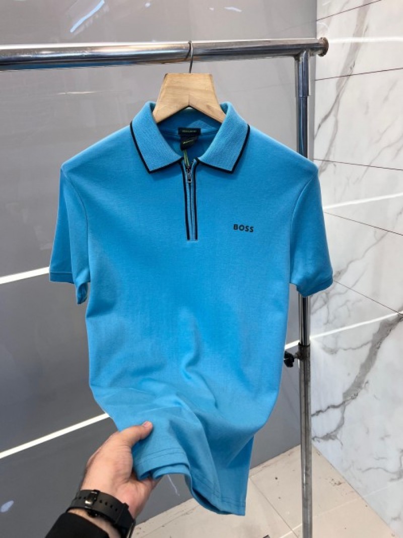 Boss Premium Imported Polo T shirt Emboss Printed Logo With ZIP STYLE Blue 2324