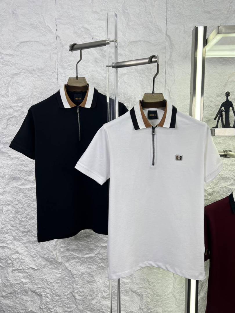 Hugo Bos s Cream Premium 240 gsm interlock cotton fabric Polo Tshirt with Allover Monogram Printed and Emboss Logo 3156