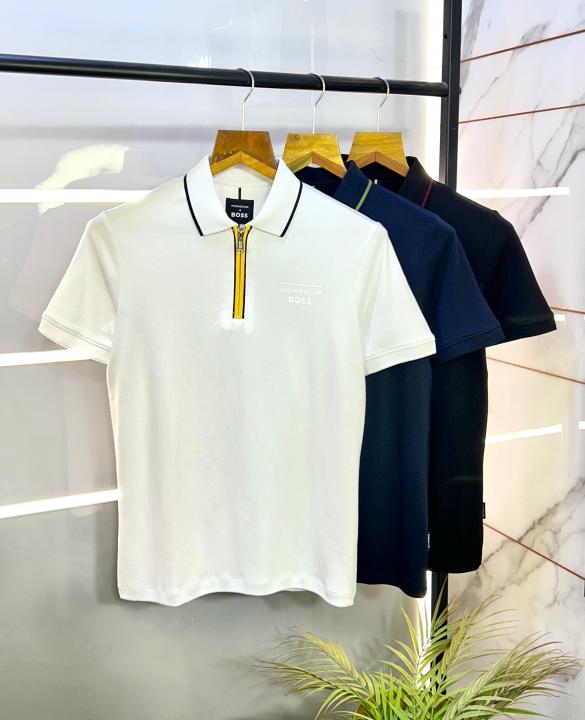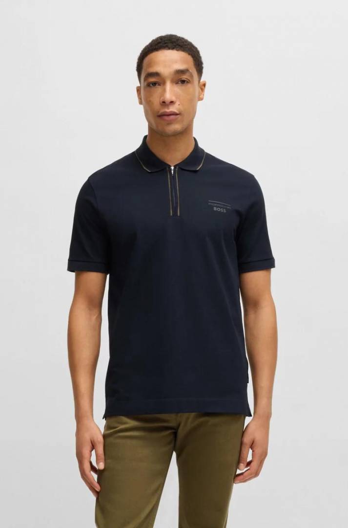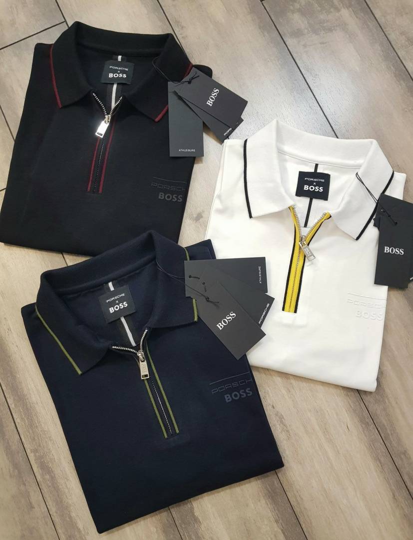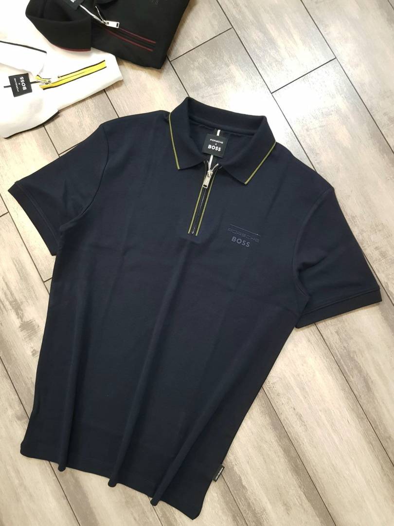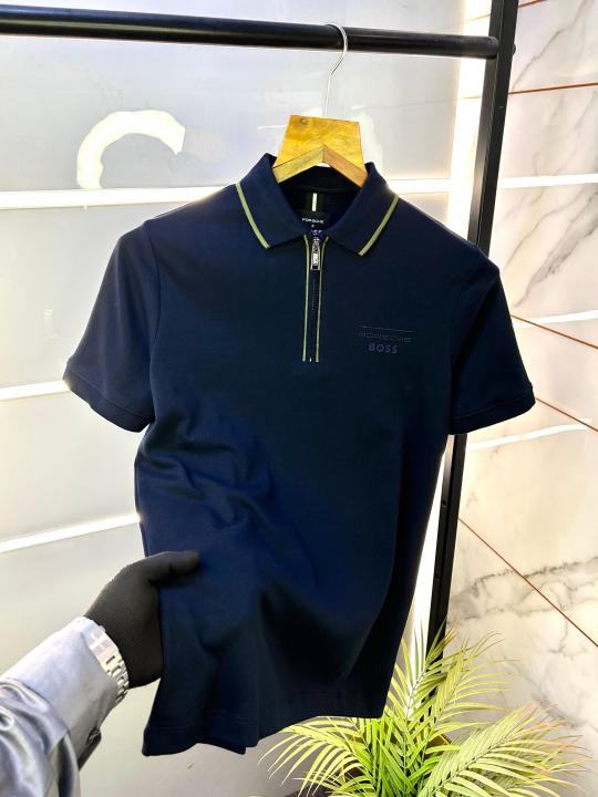 Boss x Porsche Edition Navy Zipper Collar Neck Premium Polo T-shirt F2914-NY
