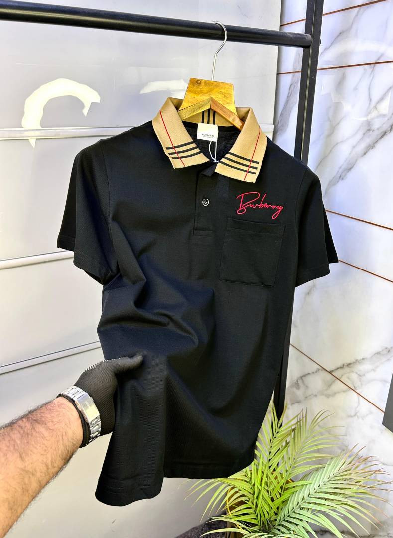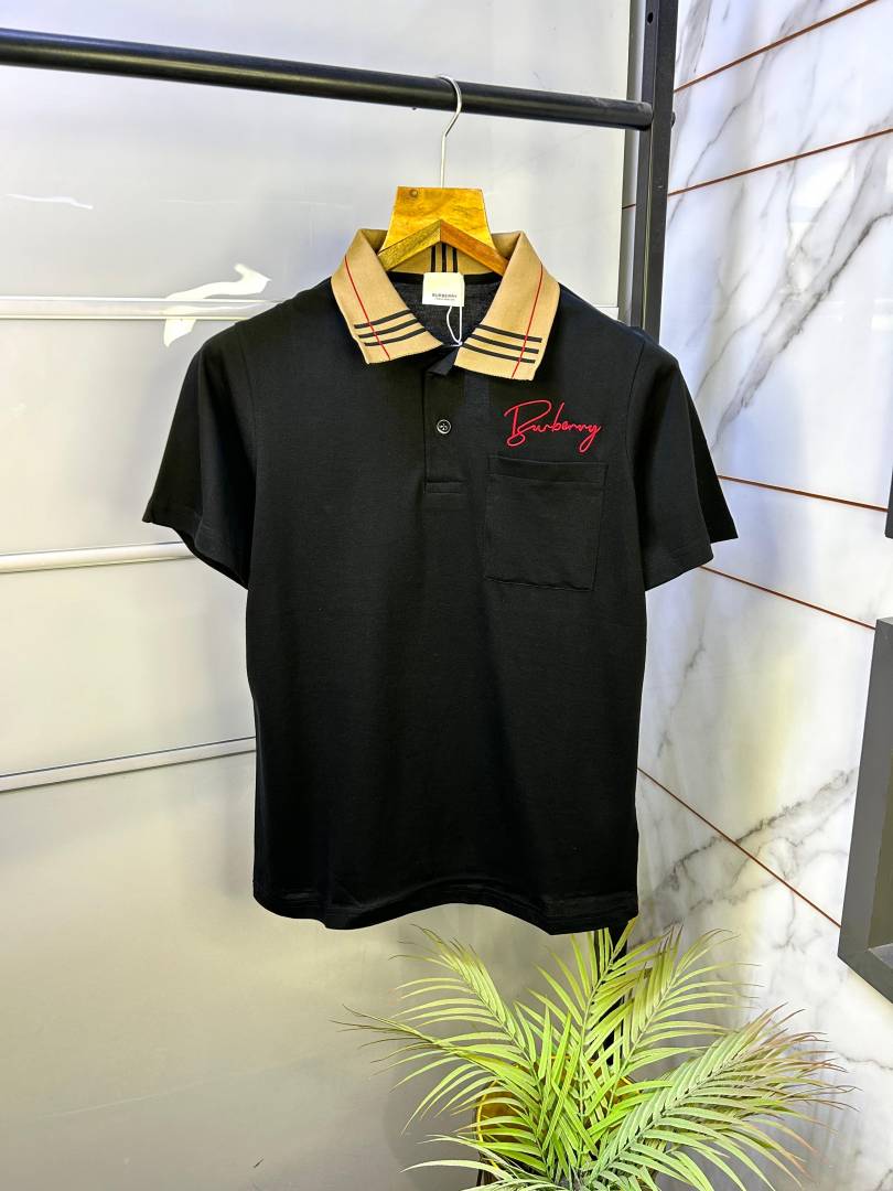 Burberr y Logo Black Collar Neck Premium Polo T-shirt F2695-BL