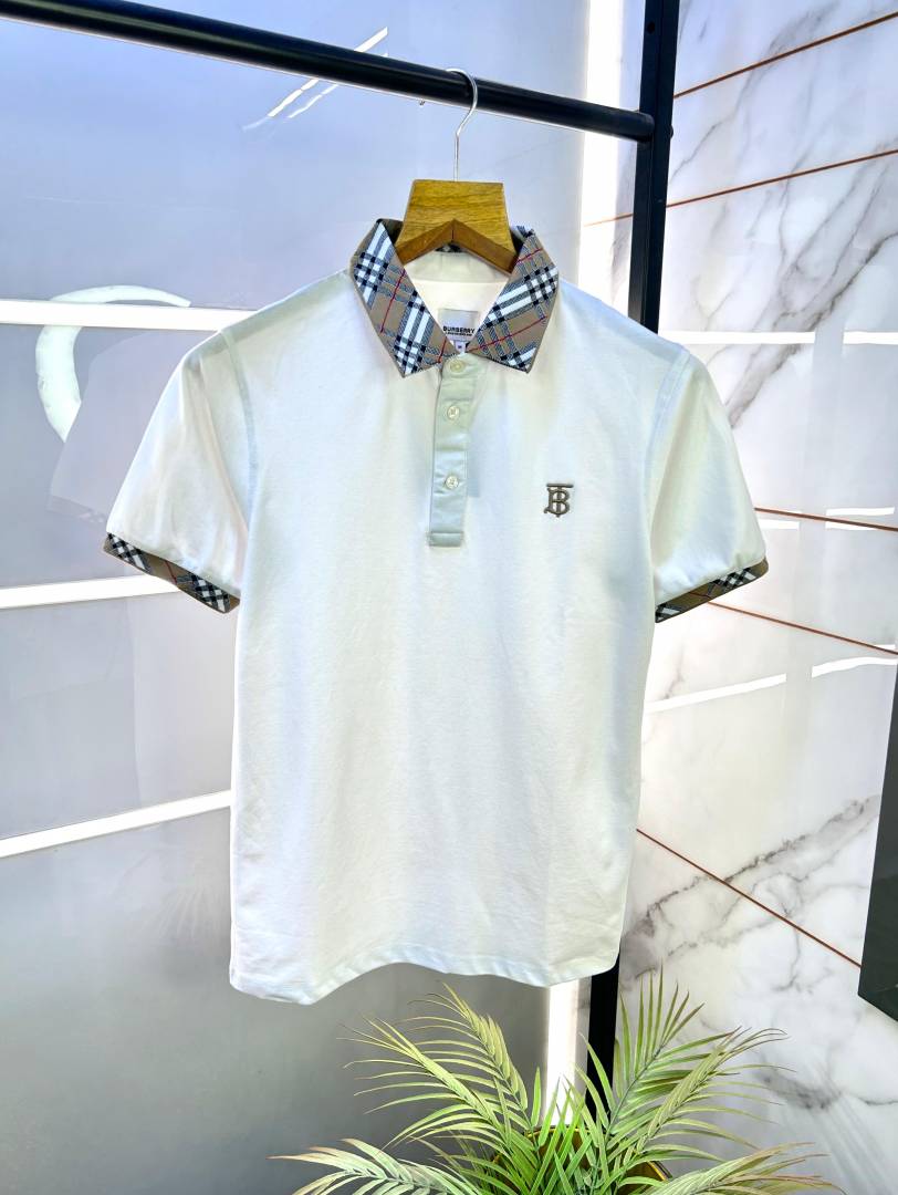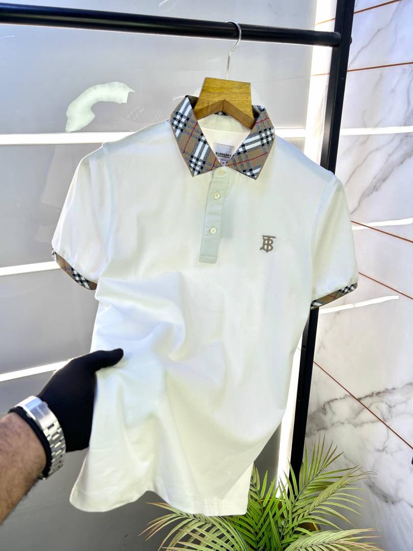 Burberr y White Premium Collar Neck Polo T-shirt F2798-WH