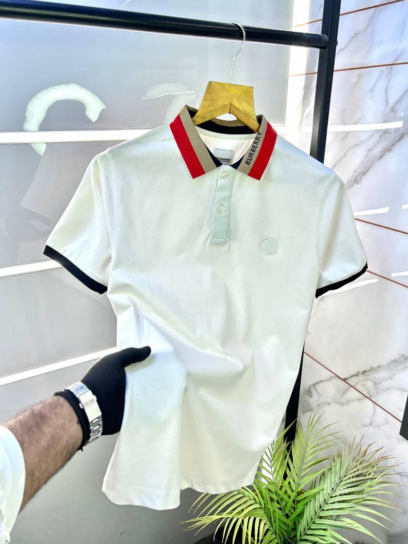 BURBERR_Y WHITE PREMIUM IMPORTED COLLAR POLO