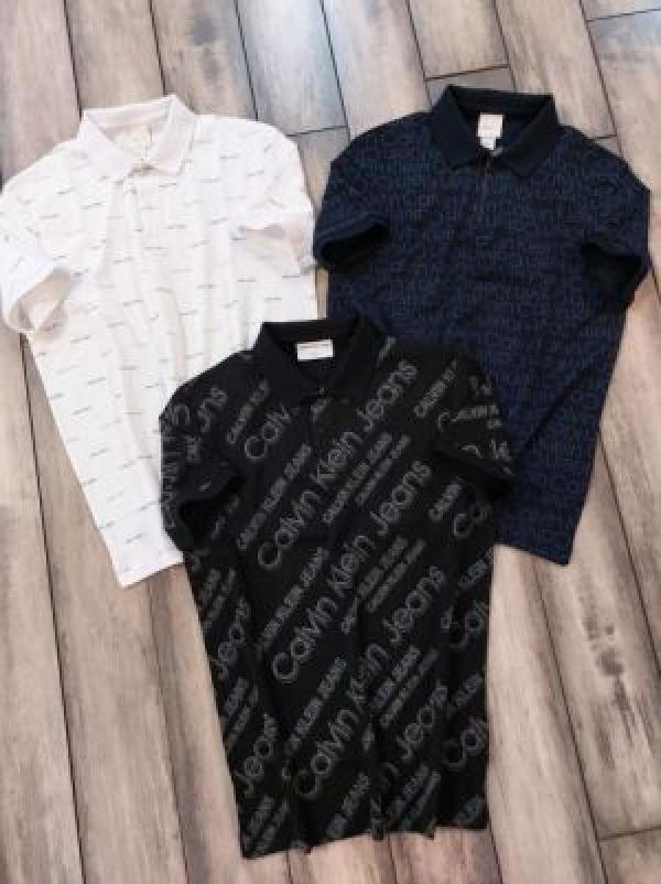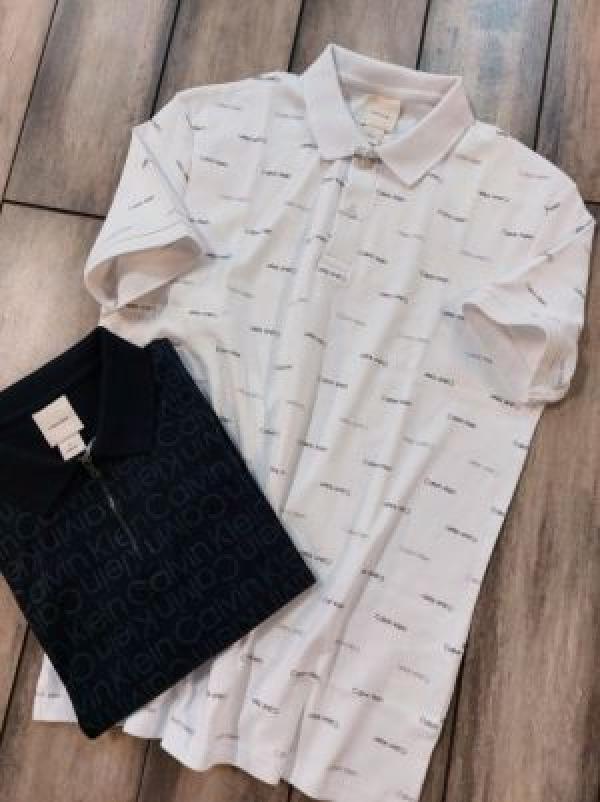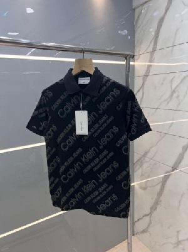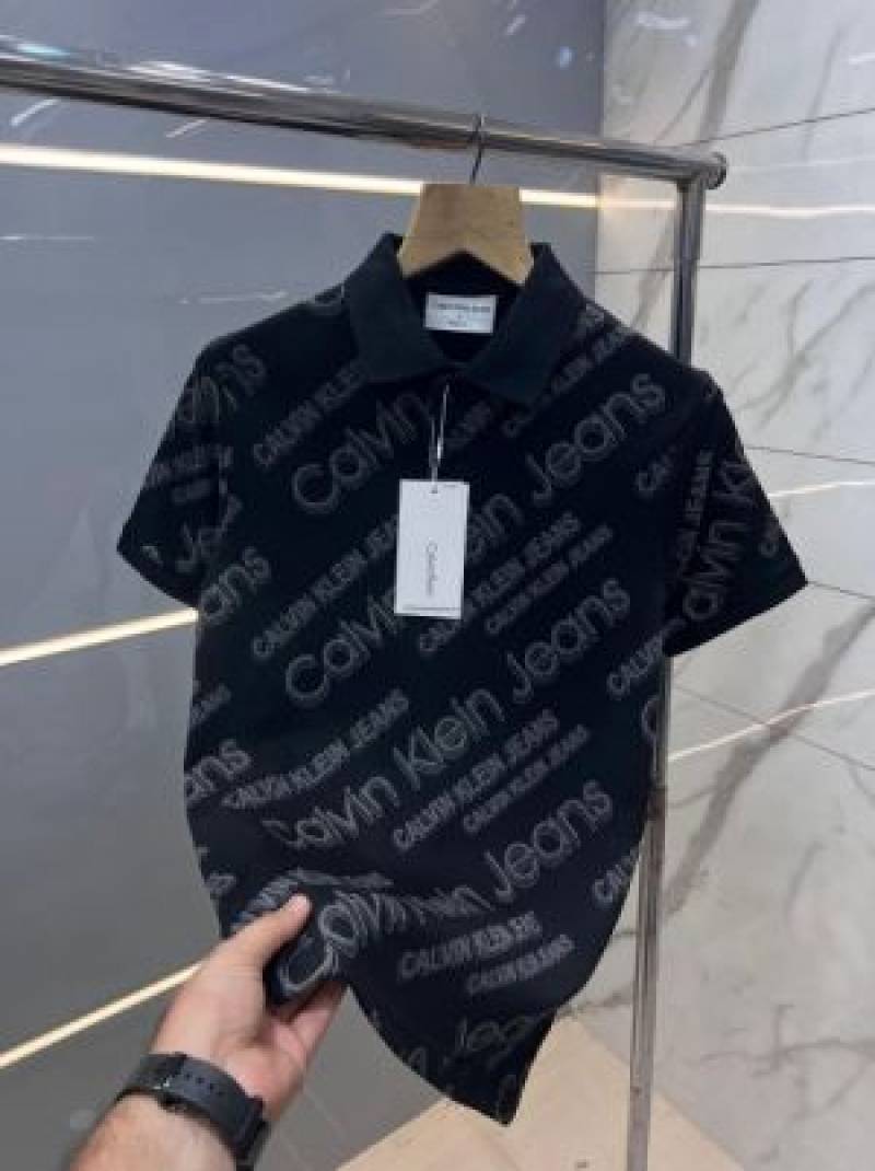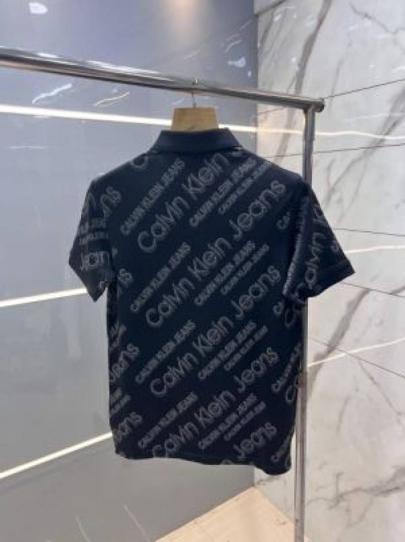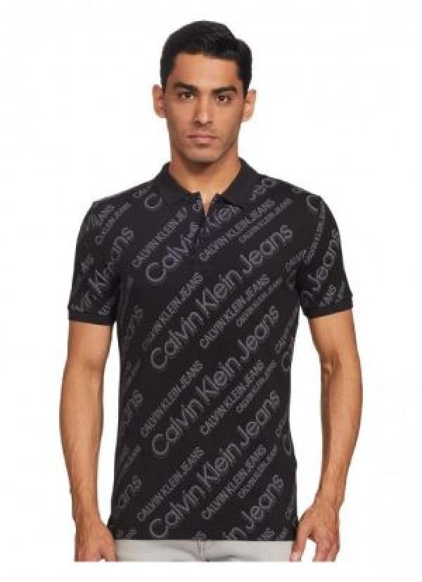 Calvin Klei n Black Premium 240gsm interlock cotton lycra fabric Polo Tshirt with All over Monogram Printed 2794