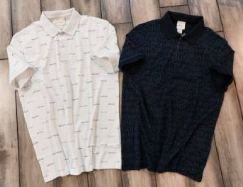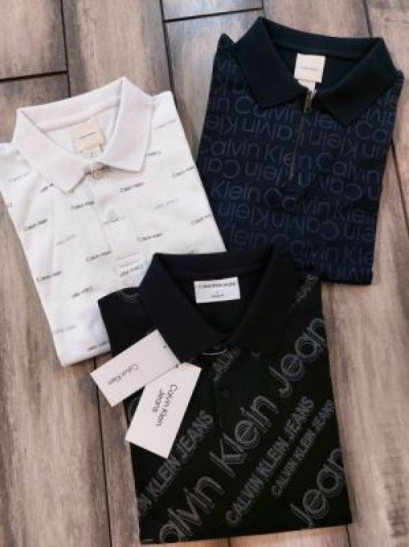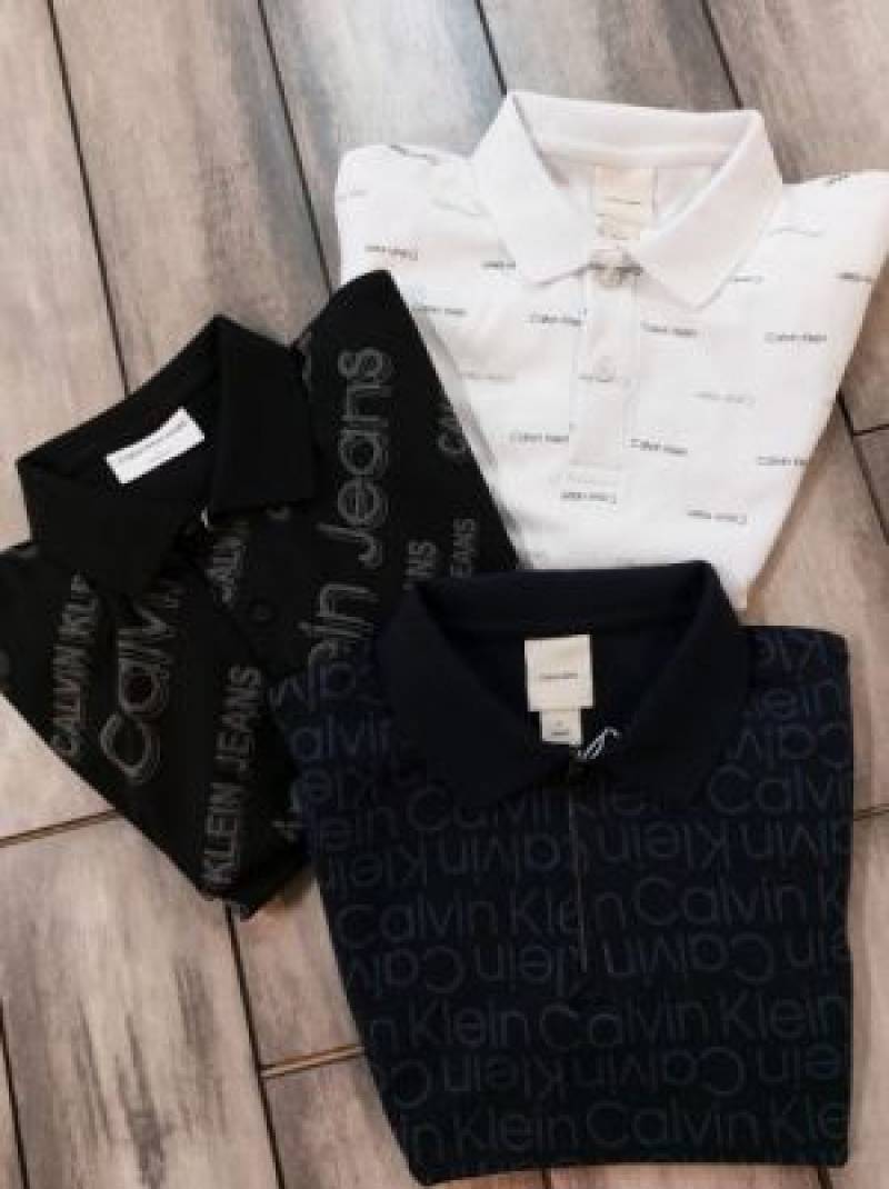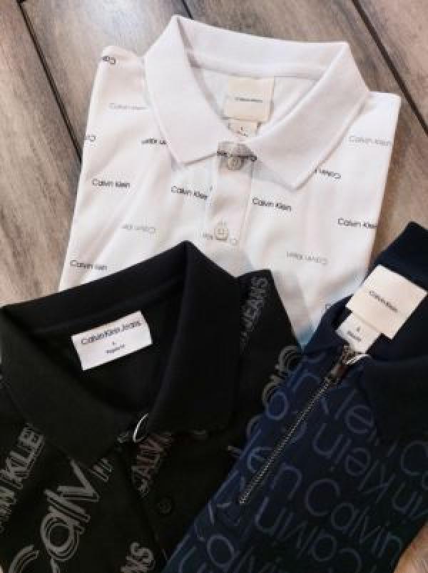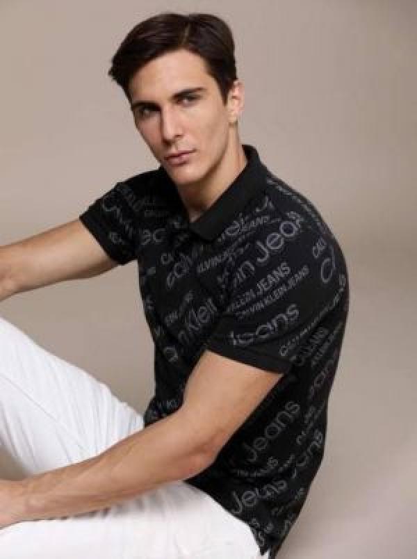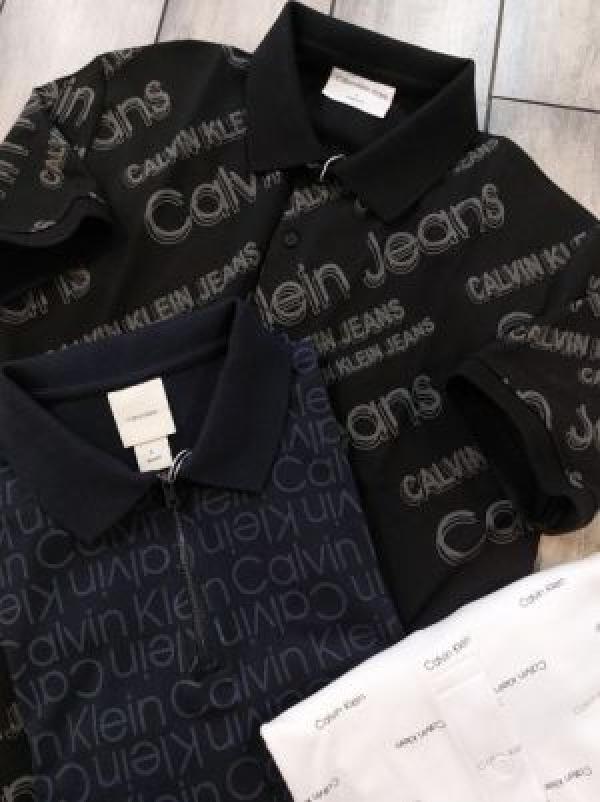 Calvin Klei n Black Premium 240gsm interlock cotton lycra fabric Polo Tshirt with All over Monogram Printed 2794