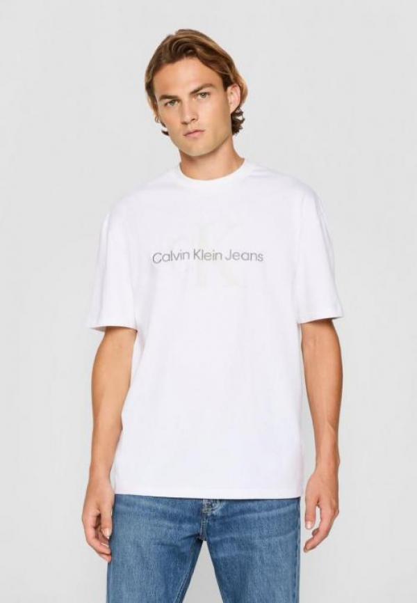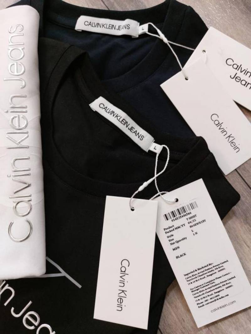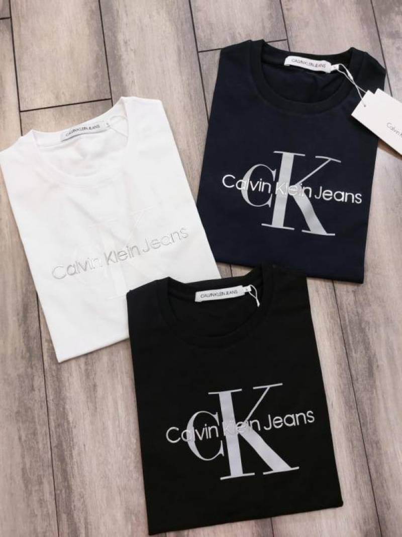 Calvin Klei n White Premium Imported Round Neck T Shirt with Emboss Printed Logo 2520