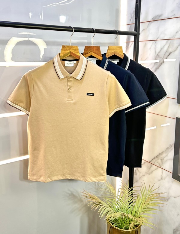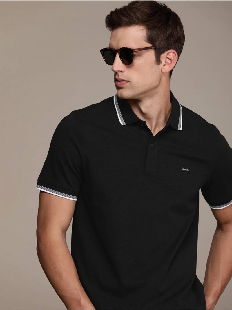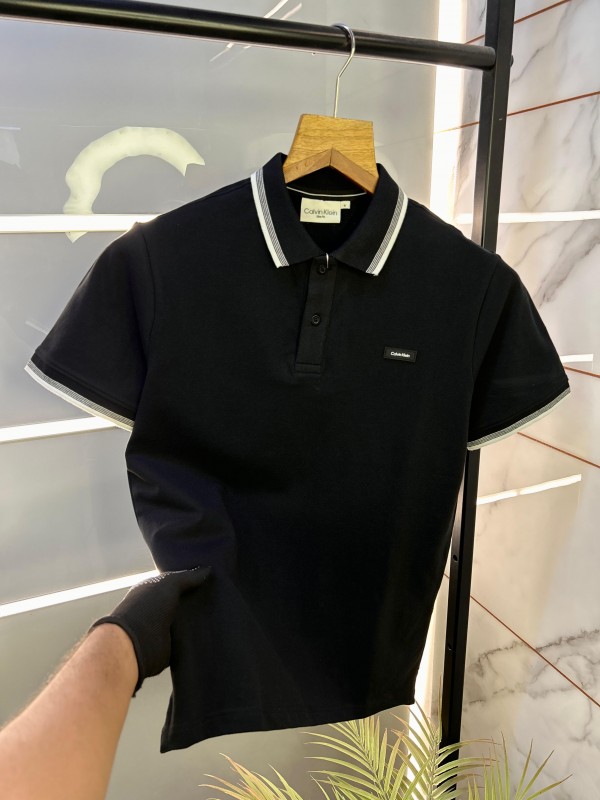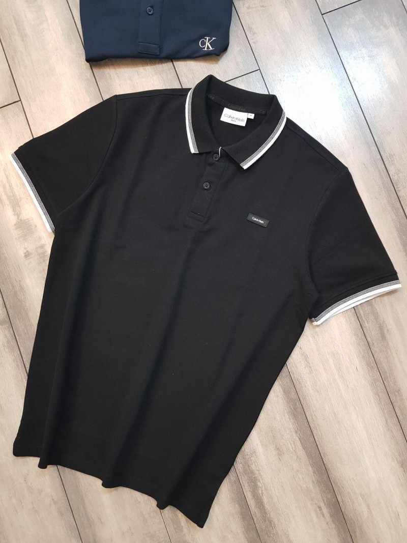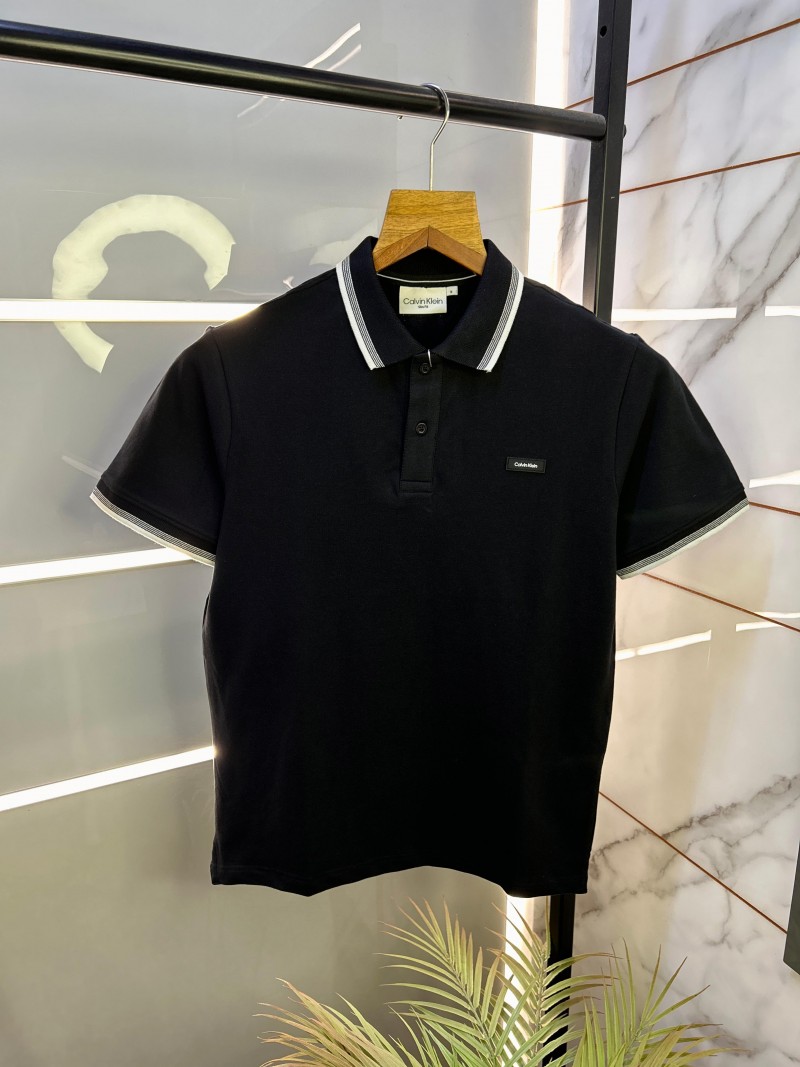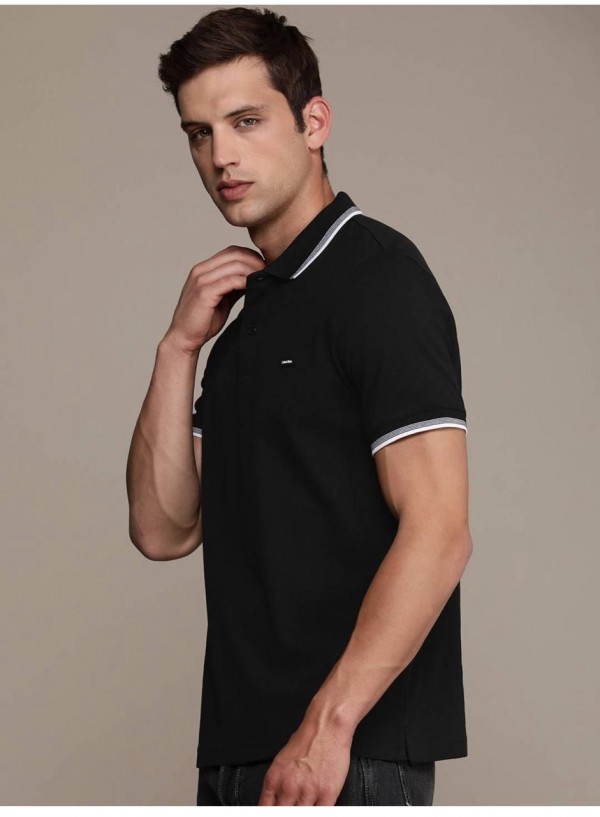 Sale Calvin_Klein Black Collar Neck Premium Polo T-shirt F2030-BL
