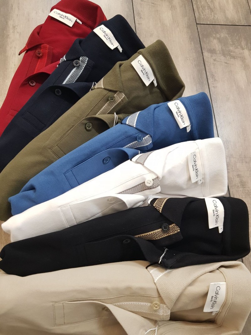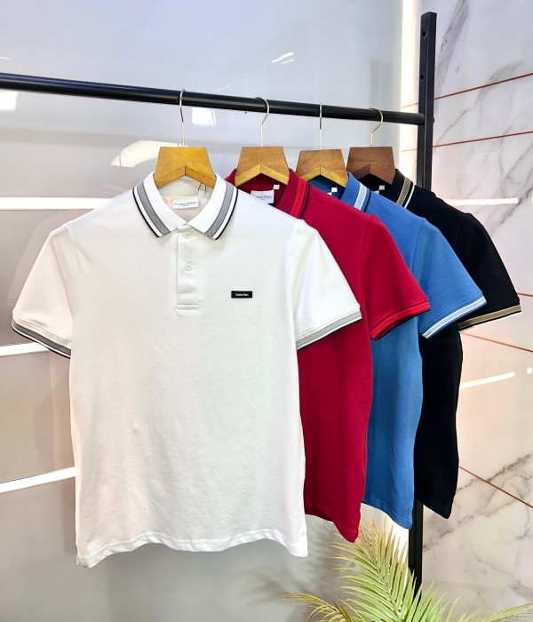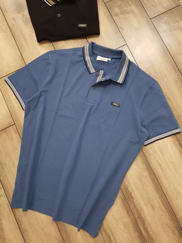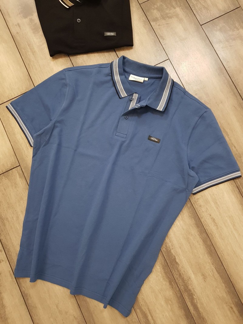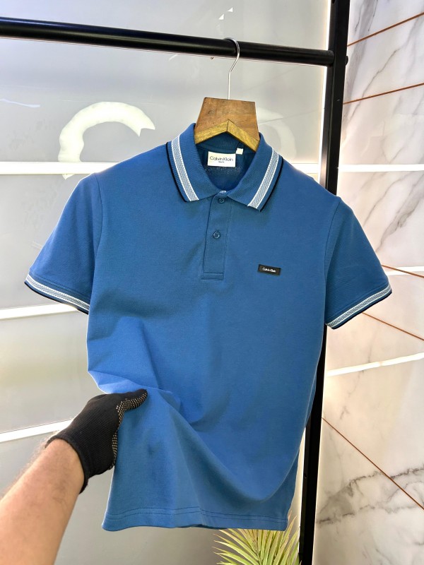 Sale Calvin_Klein Blue Collar Neck Premium Polo T-shirt F2040-BU