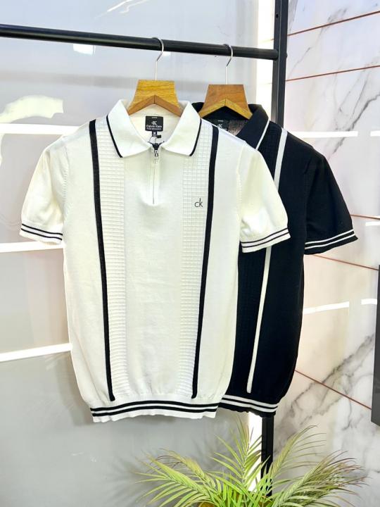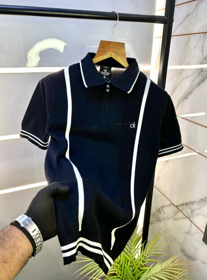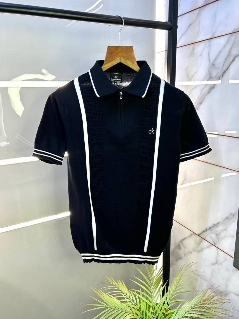 Calvin_Klein Knitted Zipper Black Super Premium Collar Neck T-shirt F3135-BL