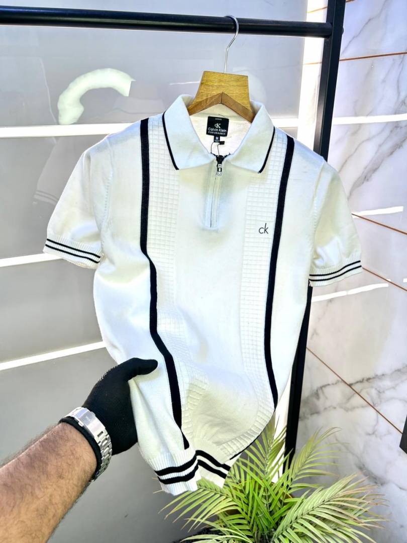 Calvin_Klein Knitted Zipper White Super Premium Collar Neck T-shirt F3135-WH