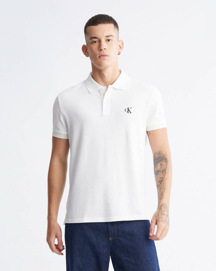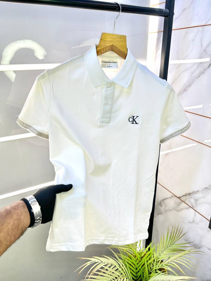 Calvin_Klein White Imported Collar Neck Premium Polo T-shirt F2652-WH