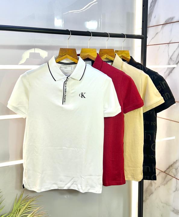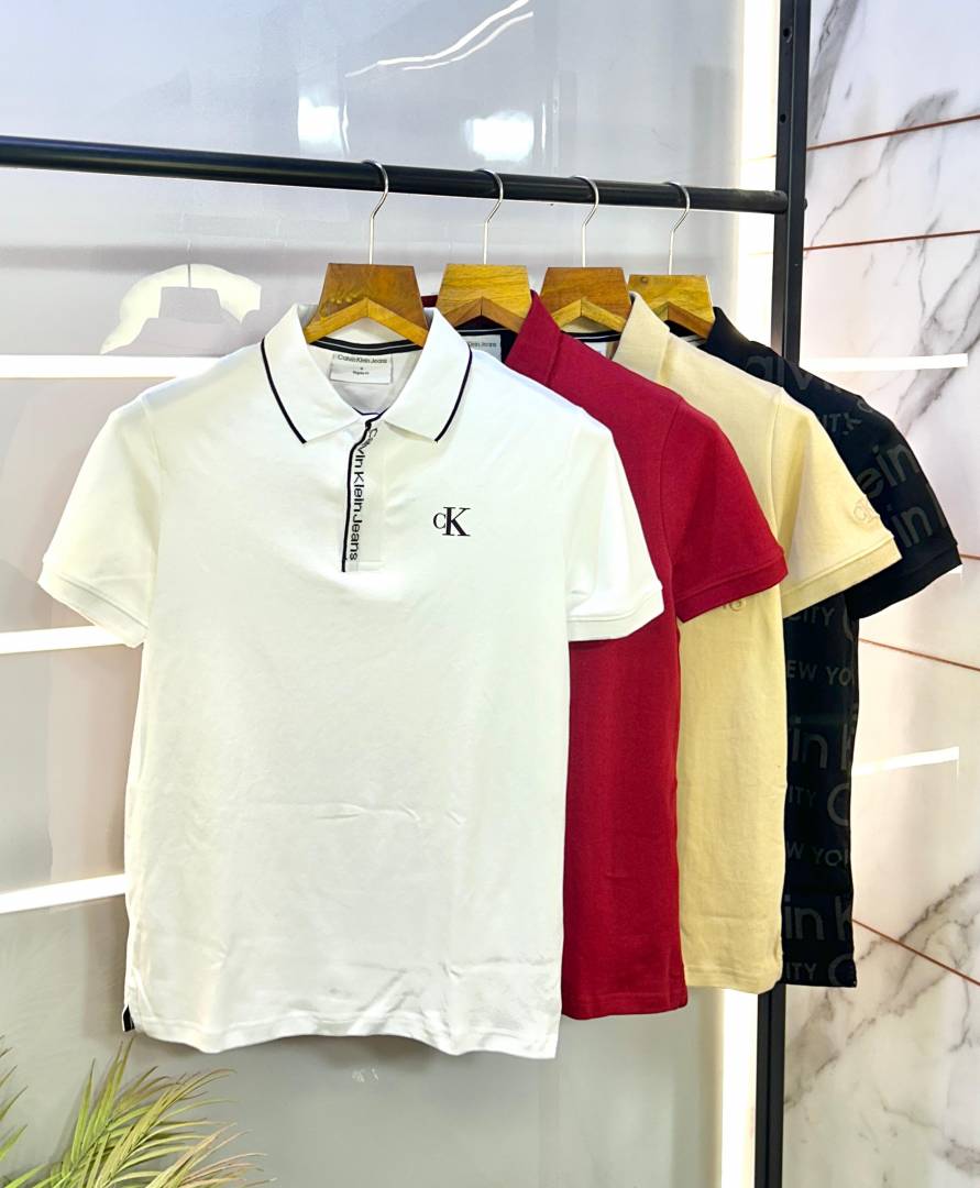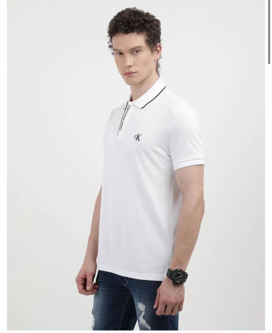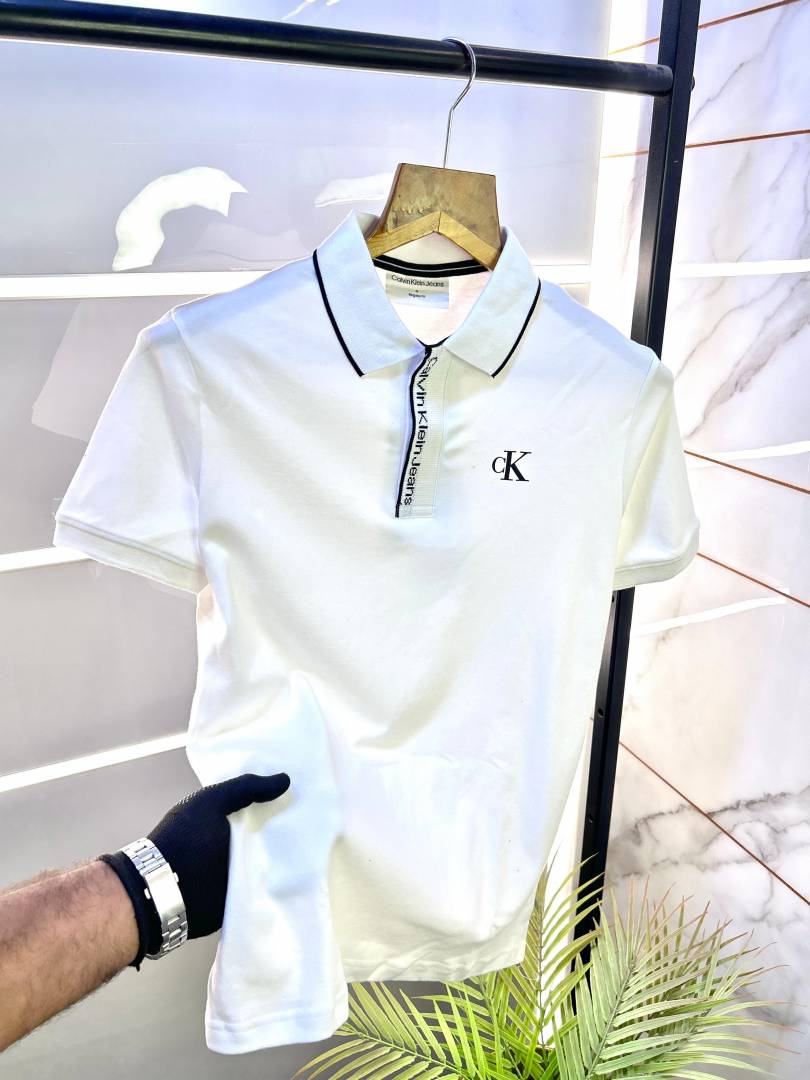 Calvin_Klein White Polo Premium Collar Neck T-shirt With Brand Box Packing F2213-WH