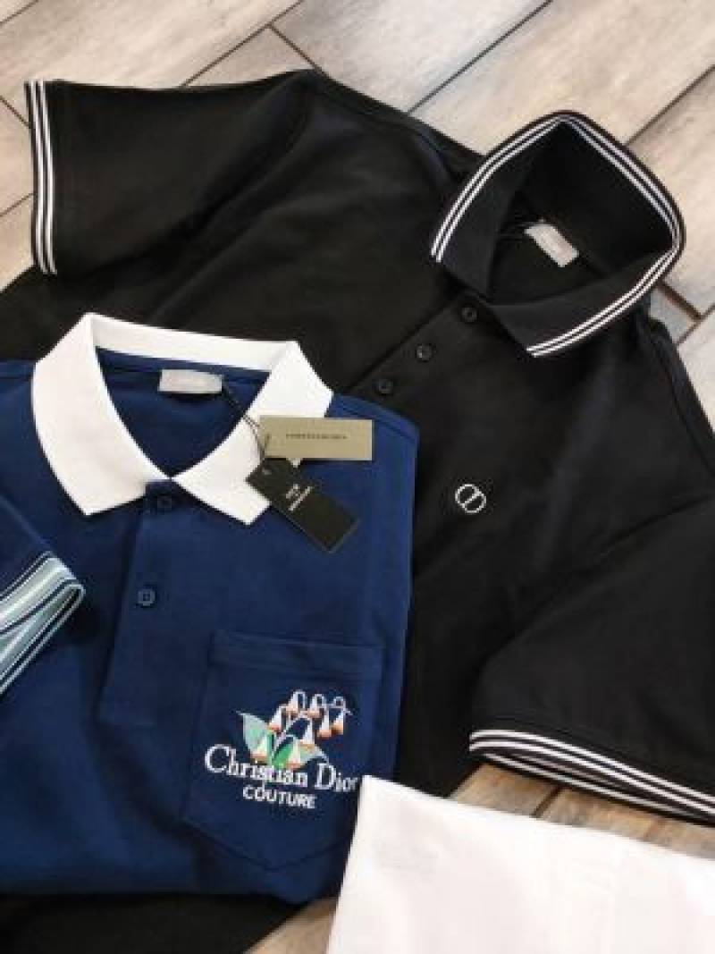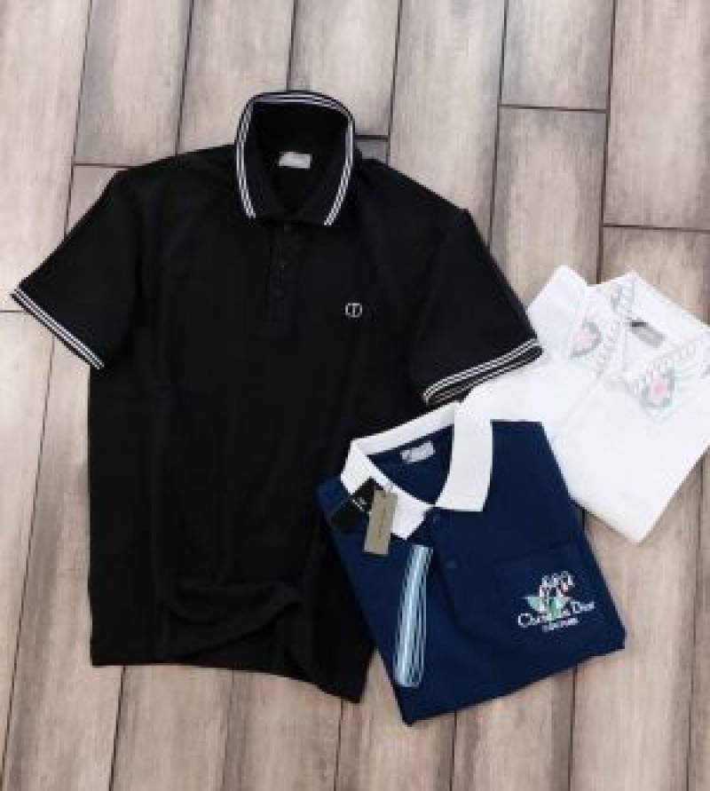 Christian Dio r Black Premium Cotton Lycra Pique fabric Polo Tshirt with Collar Design and Embroidered Logo 2885