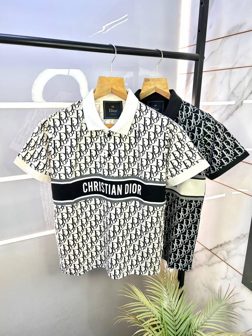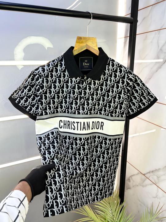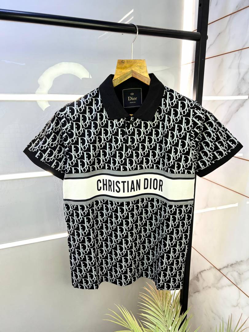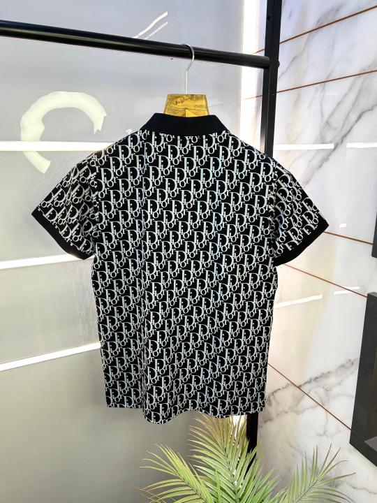 Christian Dio r Imported Black Monogram Print Premium Collar Neck Polo T-shirt F2305-BL