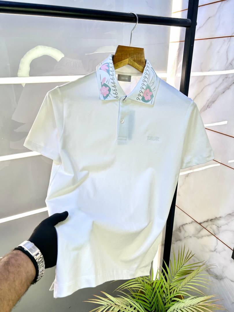 Christian Dio r White Premium Collar Neck Polo T-shirt F2918-WH