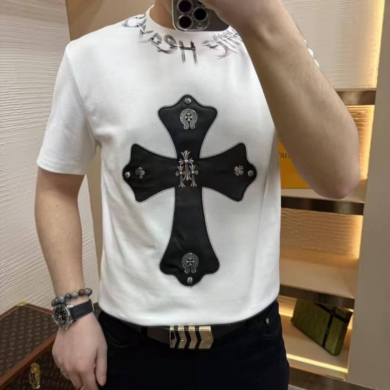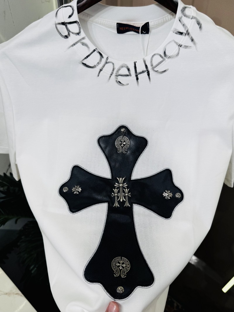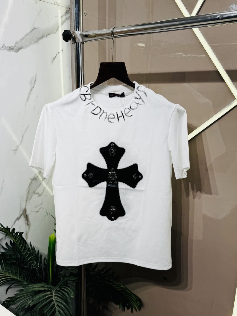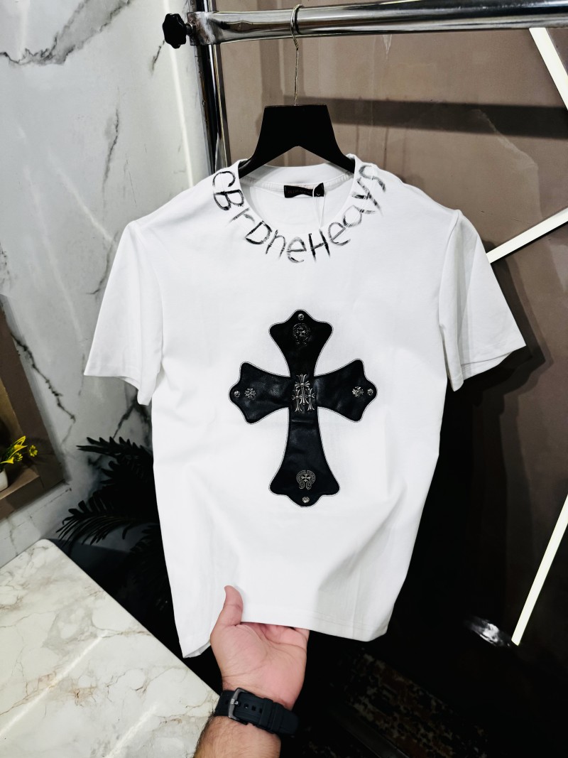 Chrome heart 100% Imported Front Leather Heavy Brand patch Very Premium Round Neck Tshirt