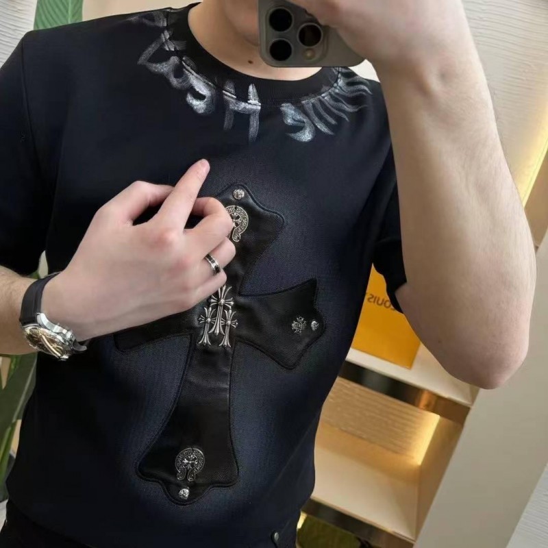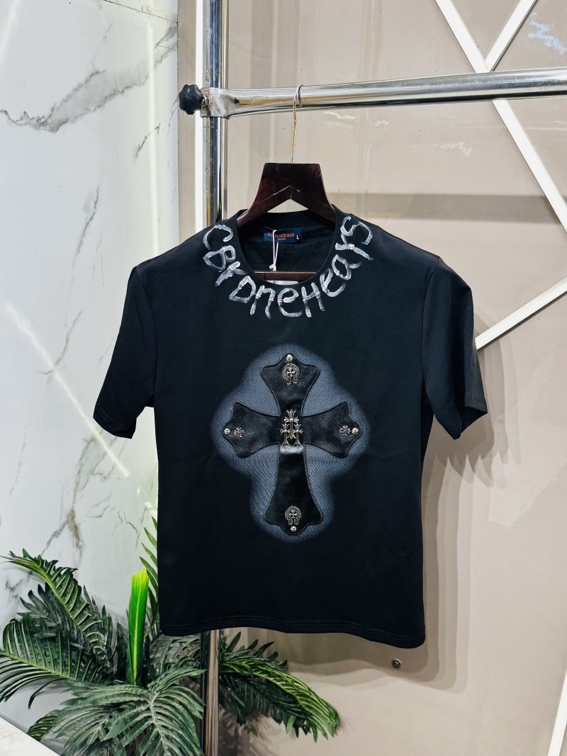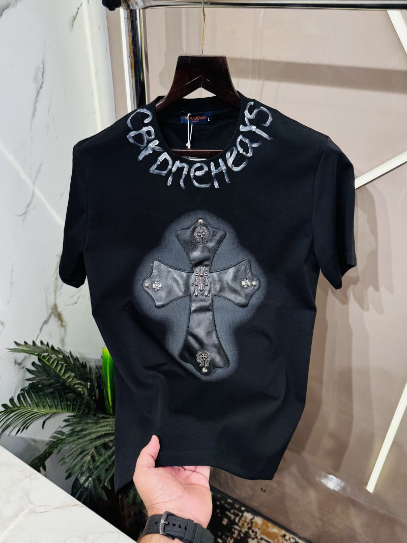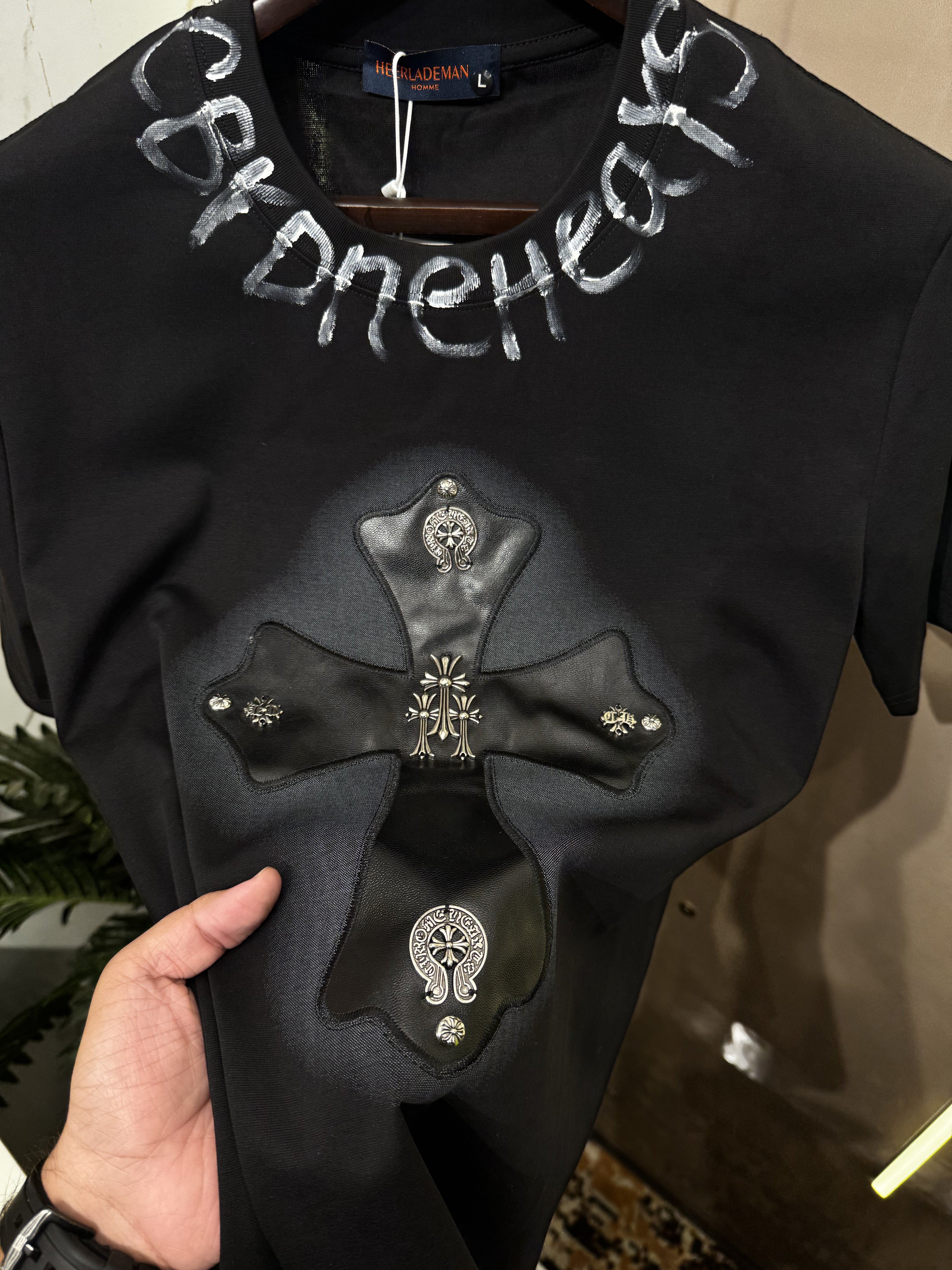 Chrome heart 100% Imported Front Leather Heavy Brand patch Very Premium Round Neck Tshirt