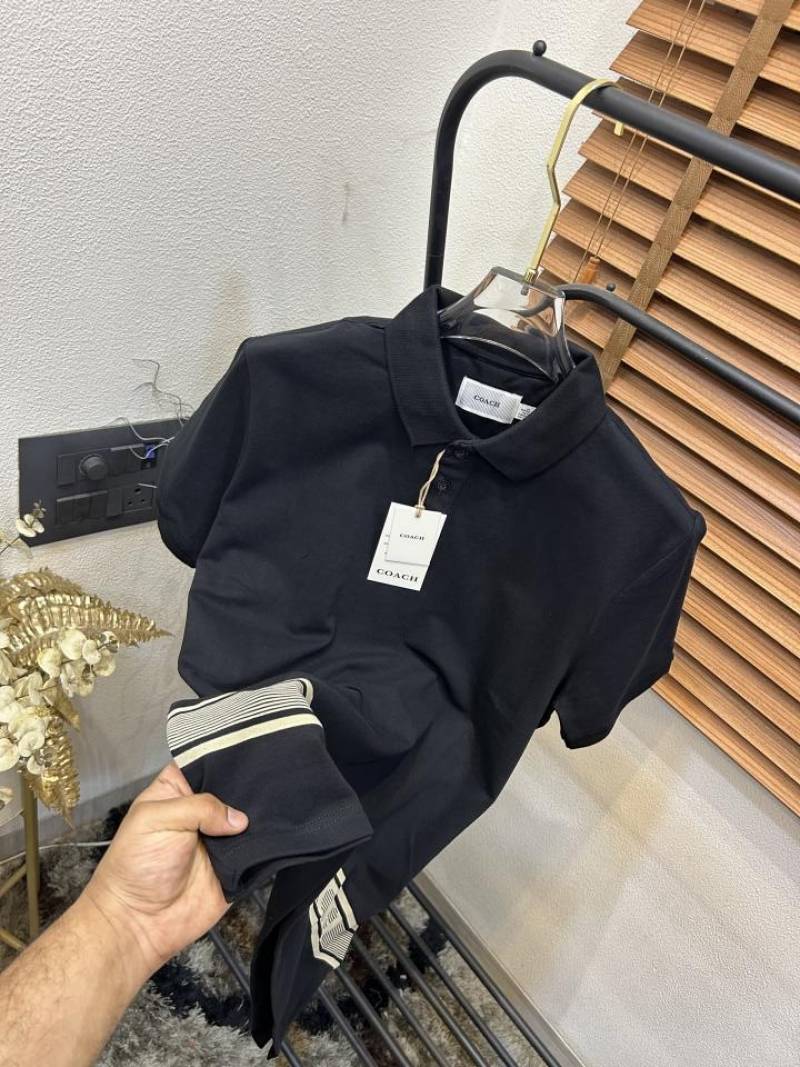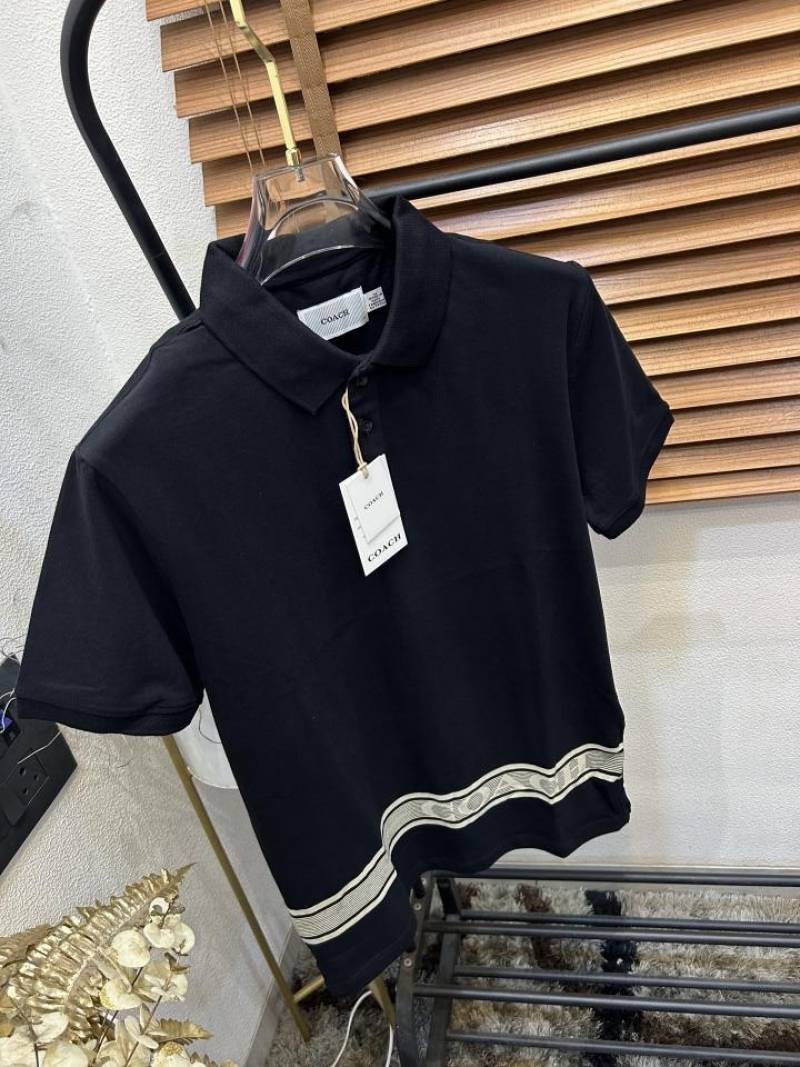 COAC_H LOGO MONOGRAM PRINT PREMIUM BLACK POLO TSHIRT