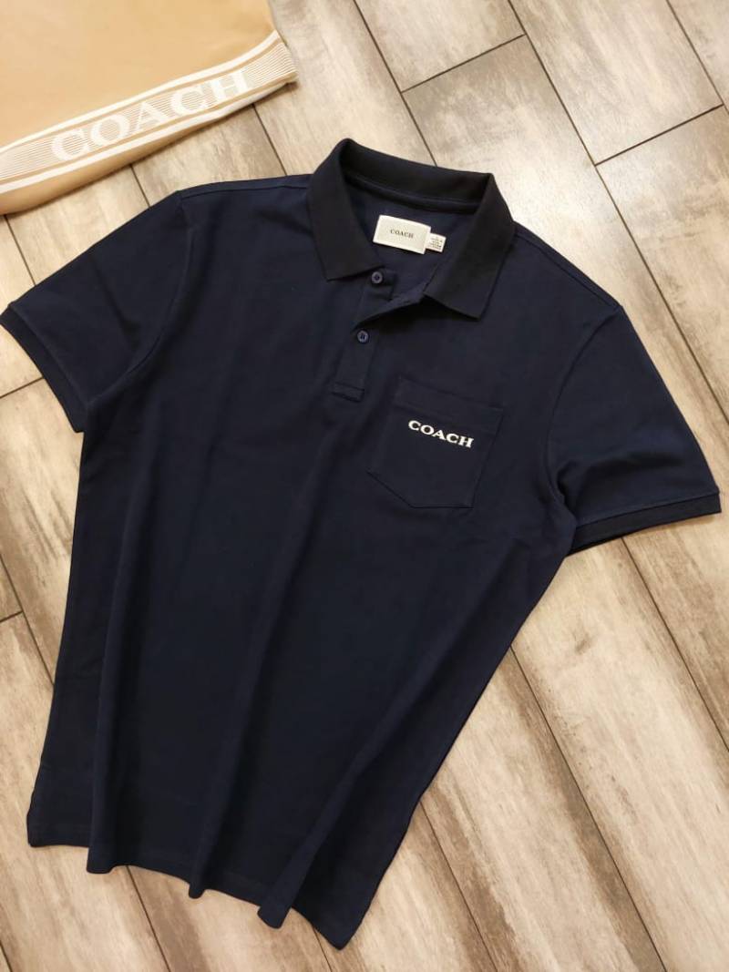 Coac h Navy Polo Premium Collar Neck T-shirt F2700-NY