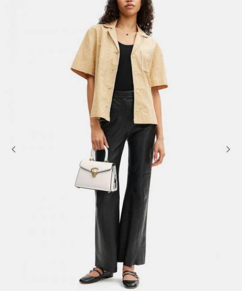 Michael_Kors Signature Carmen Flap Leather Satchel Handbag (Beige-Pink)