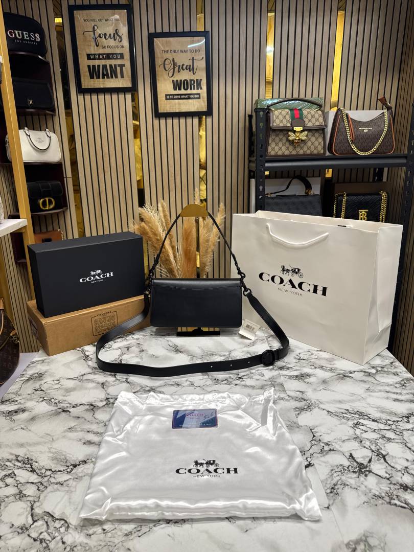 Coac_h Tabby Chain Clutch In Snake-embossed C Logo Shoulder Bag With Double Og Box And Dust Bag Includes Carry Bag (Full Black)