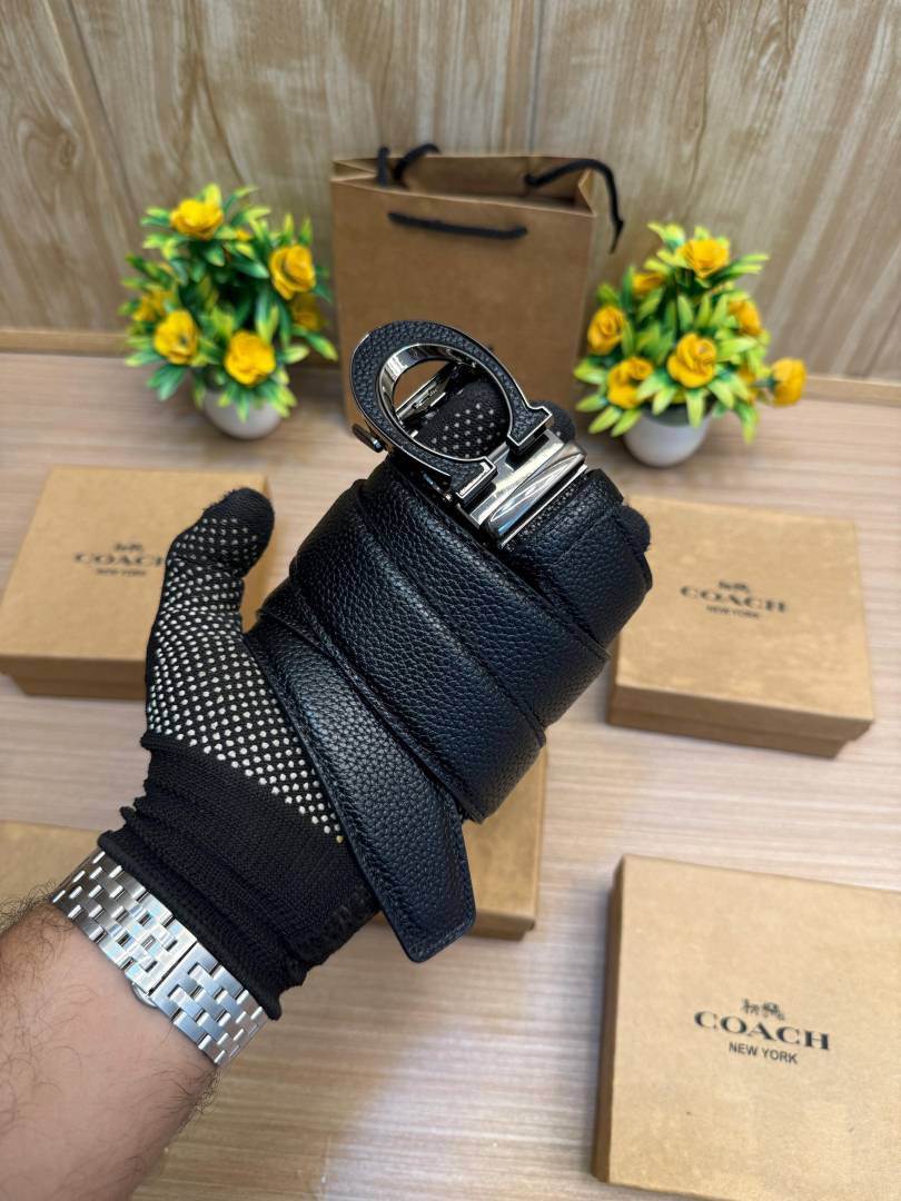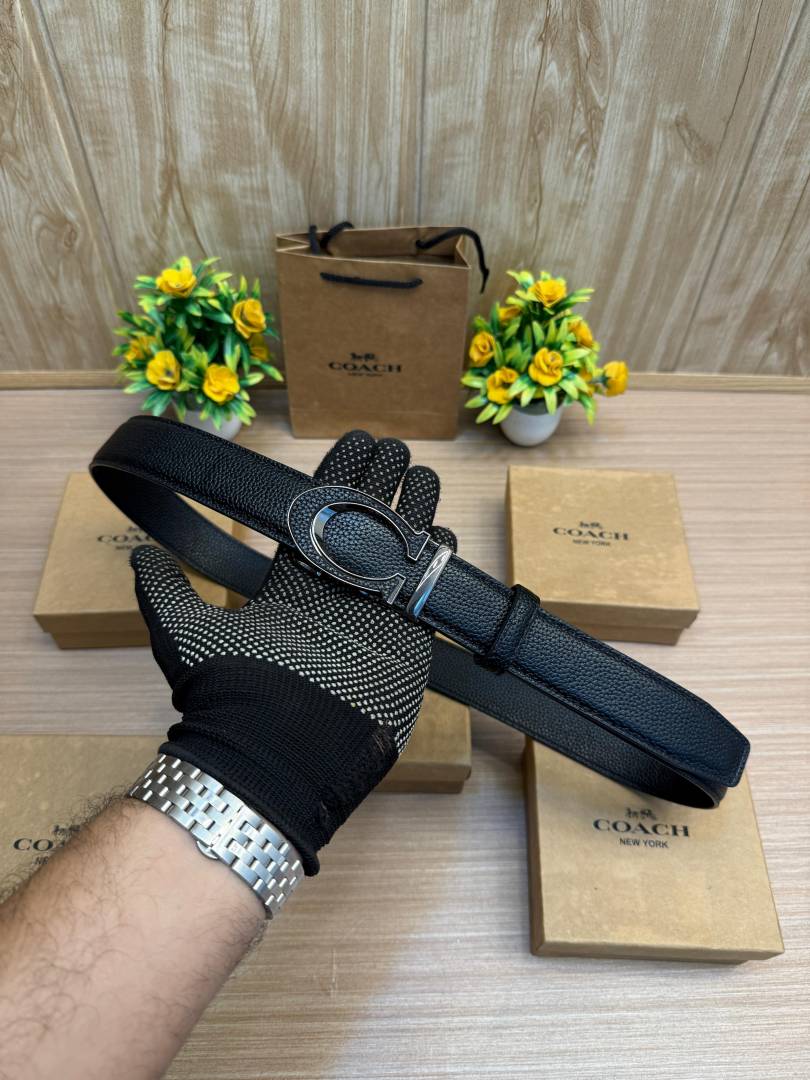 Coac_h Reversible Monogram Signature Belt with Two Buckles Box Dust Bag and Carry Bag (10-CO)