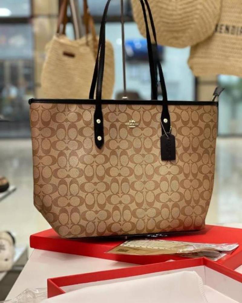 Coach_Signature_City_Tote_Bag_With_OG_Box_&_Dust_Bag_(Beige_Black-1119)