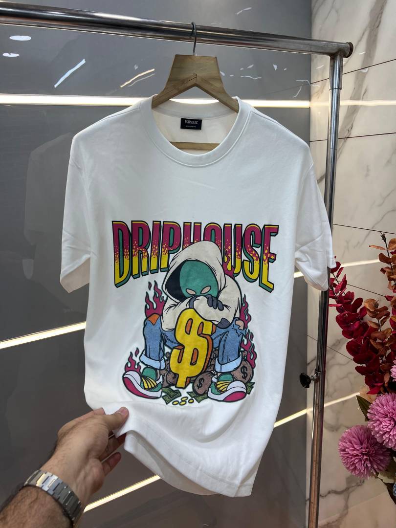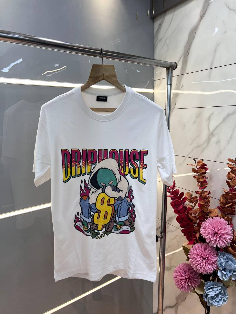 Drip House White Imported Premium Round Neck Printed Tshirt 3102