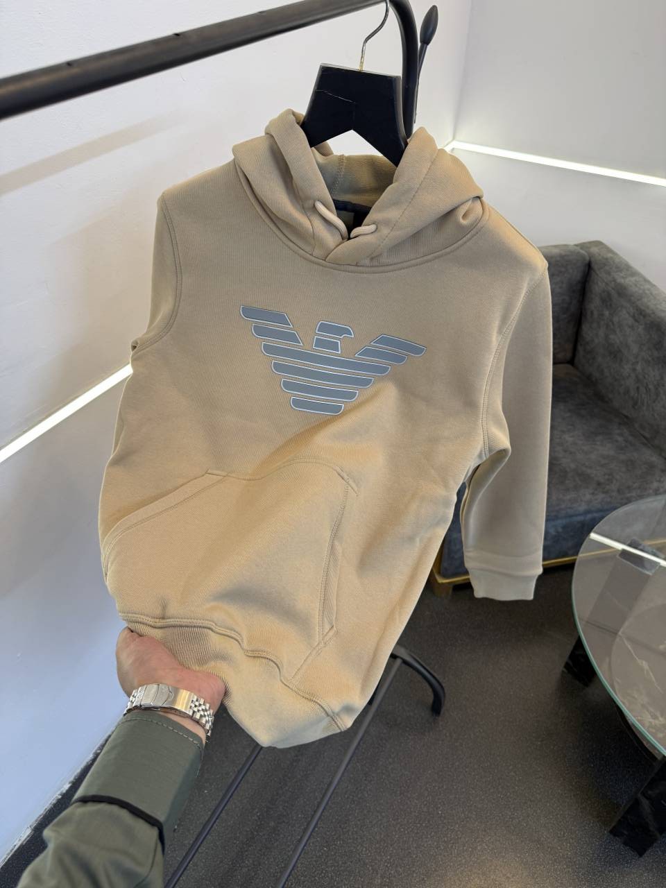 Emporio arman i imported heavy fleece hooded sweatshirt beige