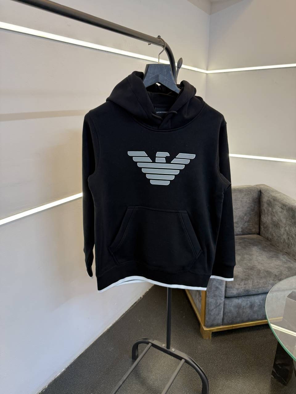 Emporio arman i imported heavy fleece hooded sweatshirt black