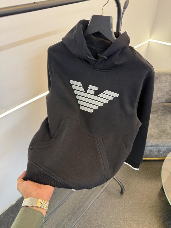 ? *Emporio armani heavy imported hooded sweatshirt with brand logo patch and inside fleece now in stock*?